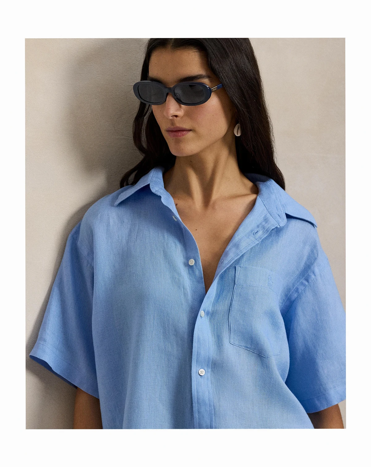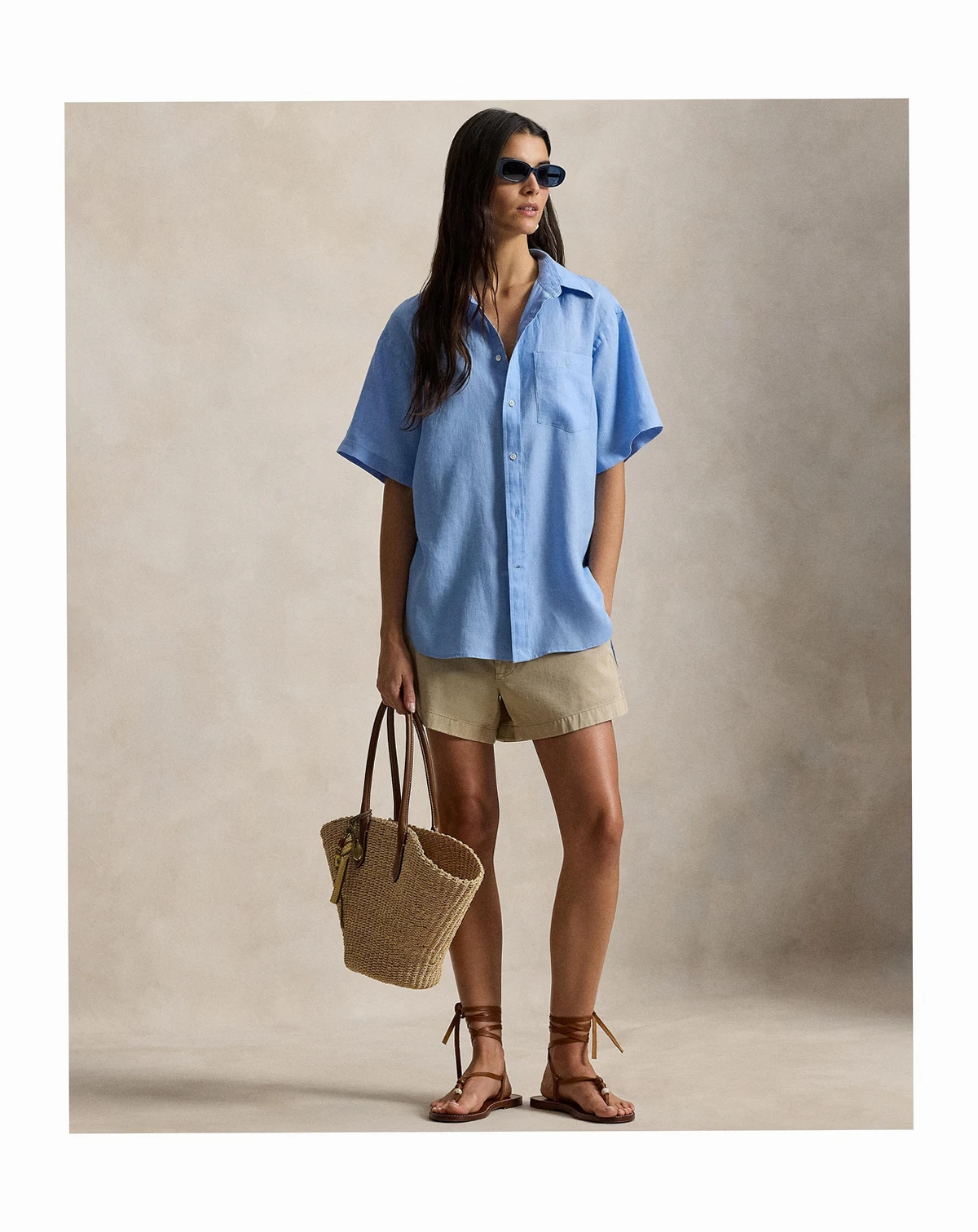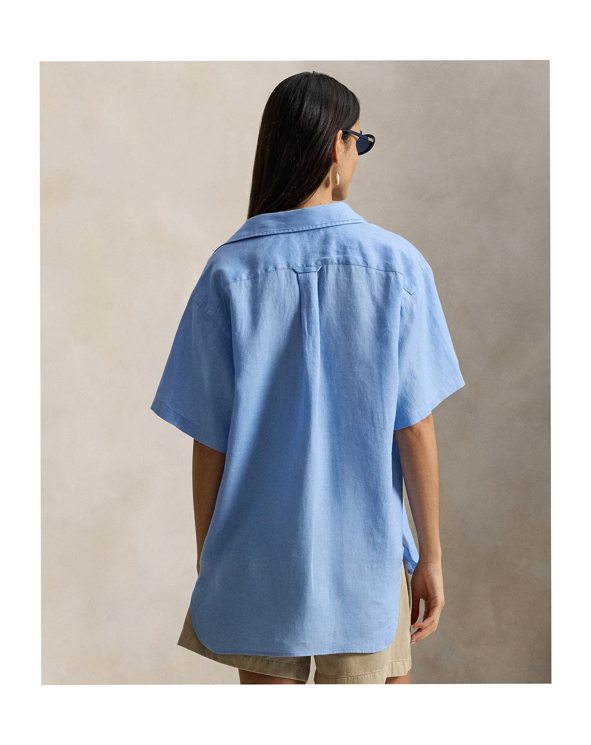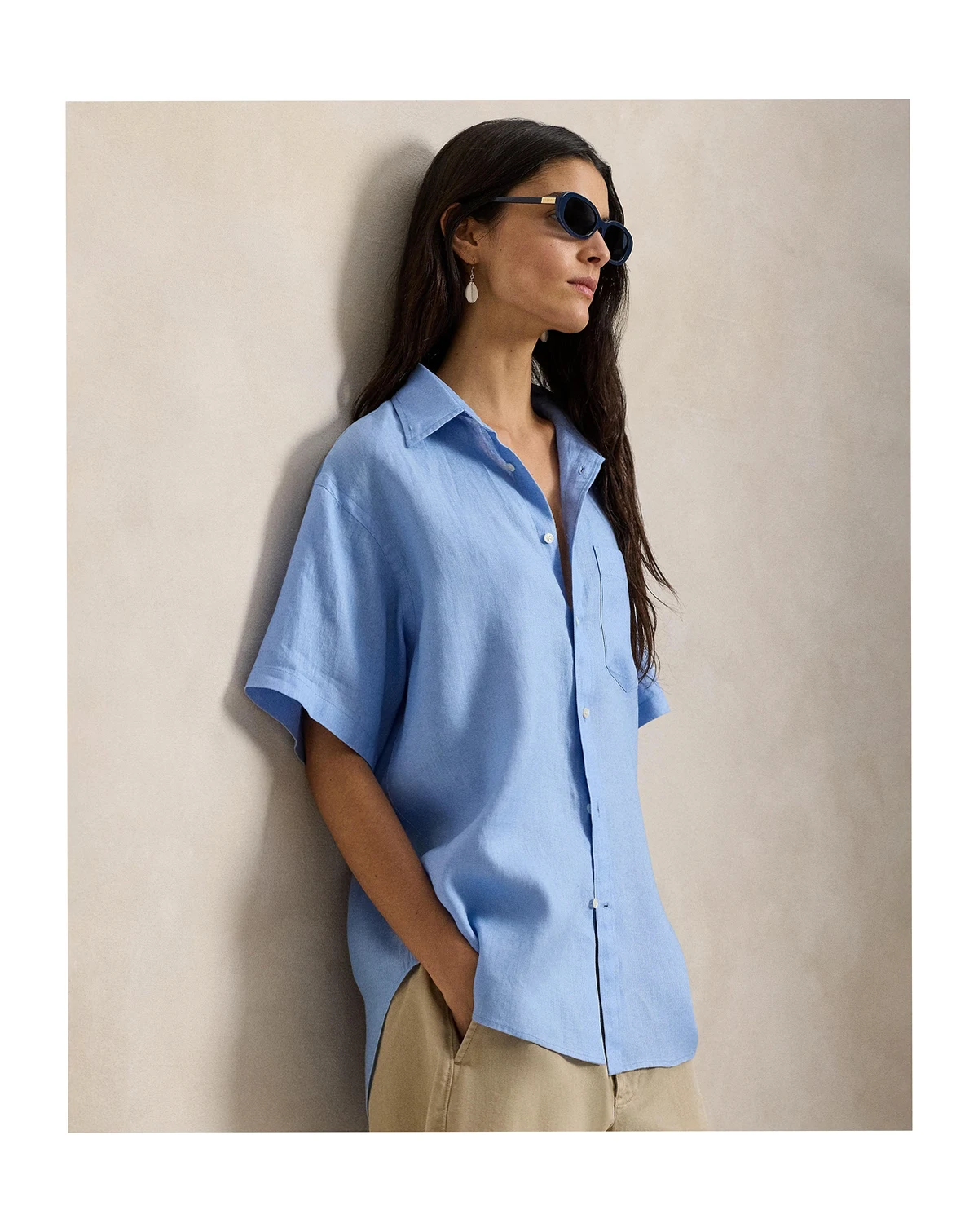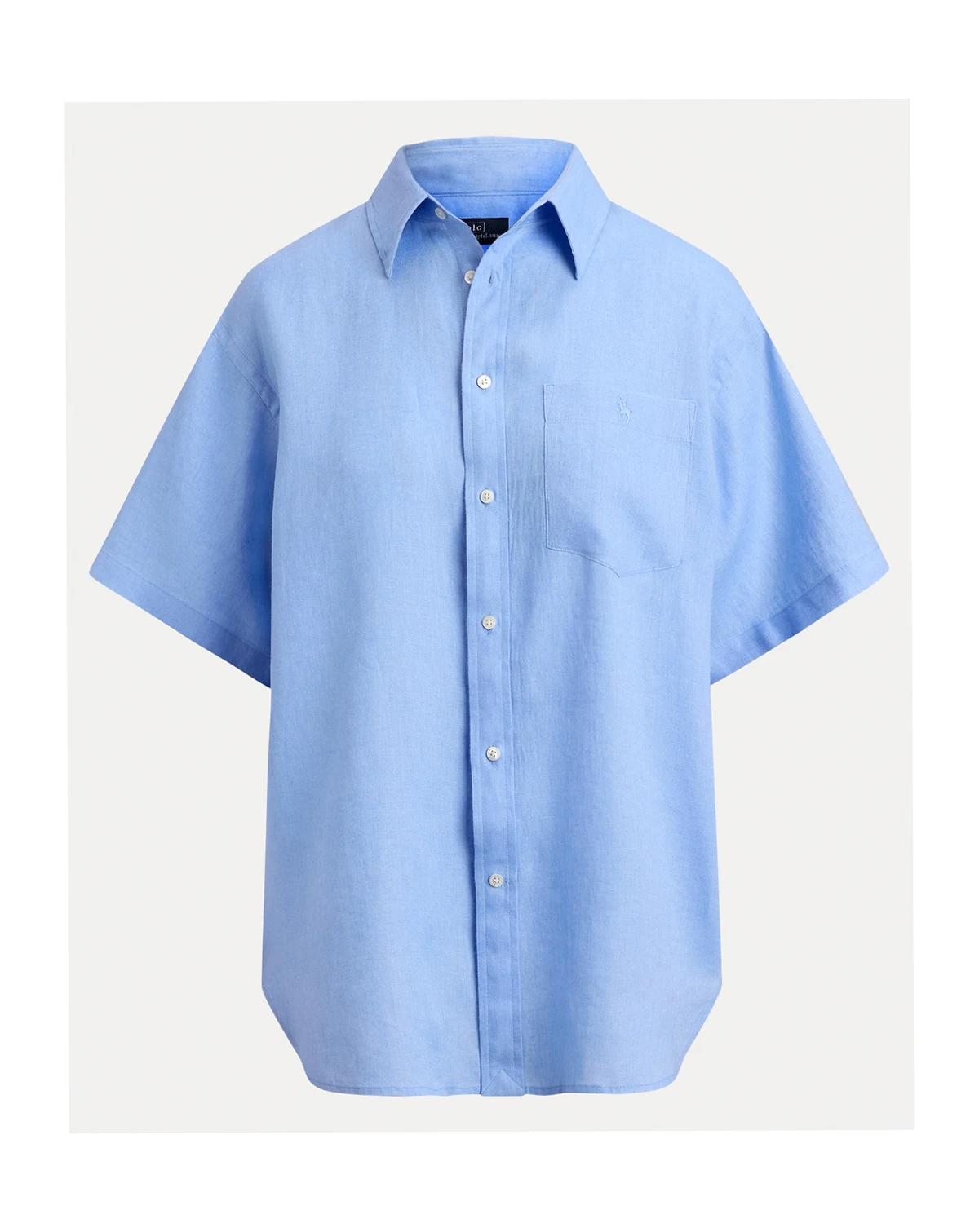 Channel relaxed polish with an oversized fit and utility-inspired patch pocket defining this breathable linen shirt from Polo Ralph Lauren. A signature embroidered Pony and box-pleated back yoke add classic refinement.