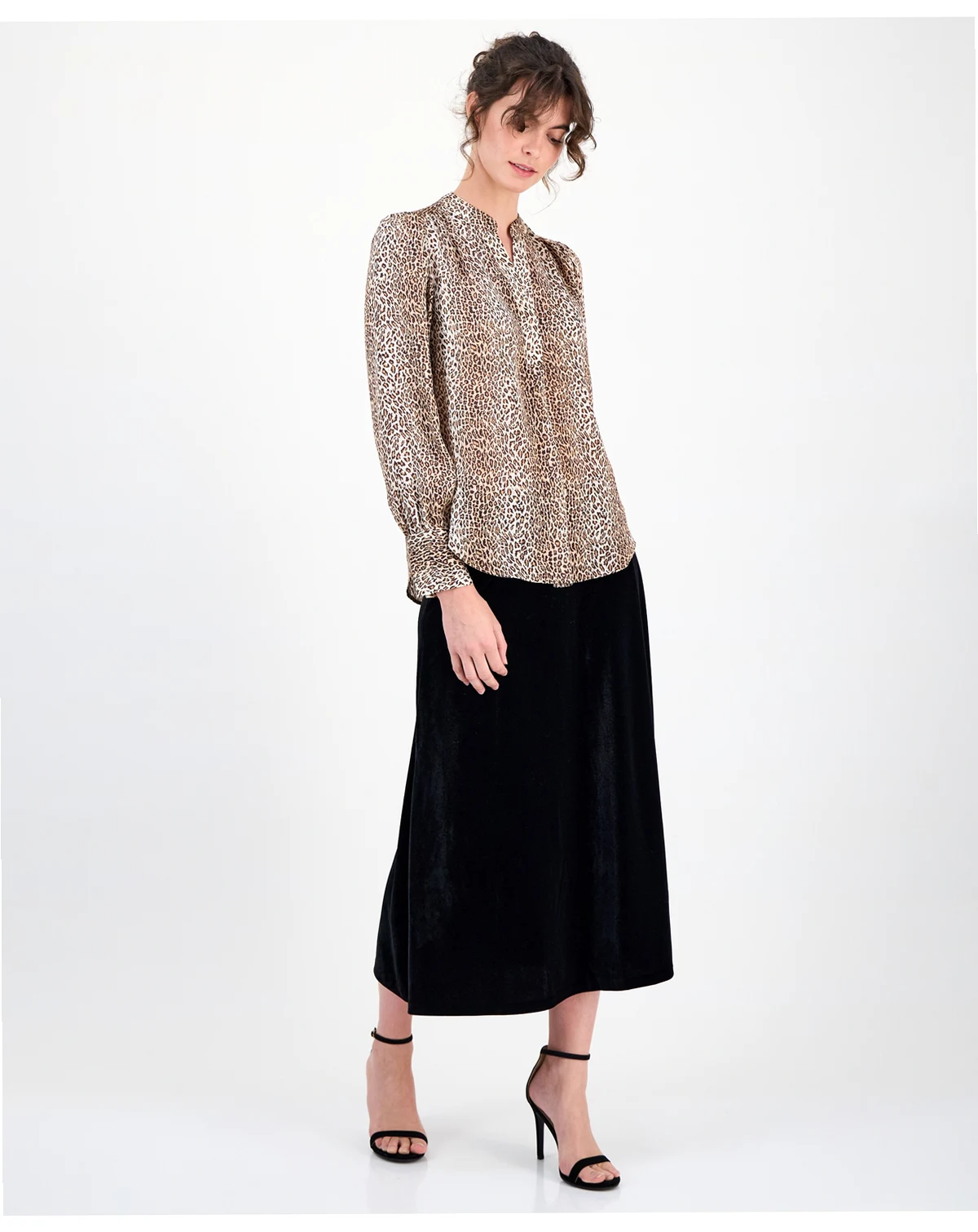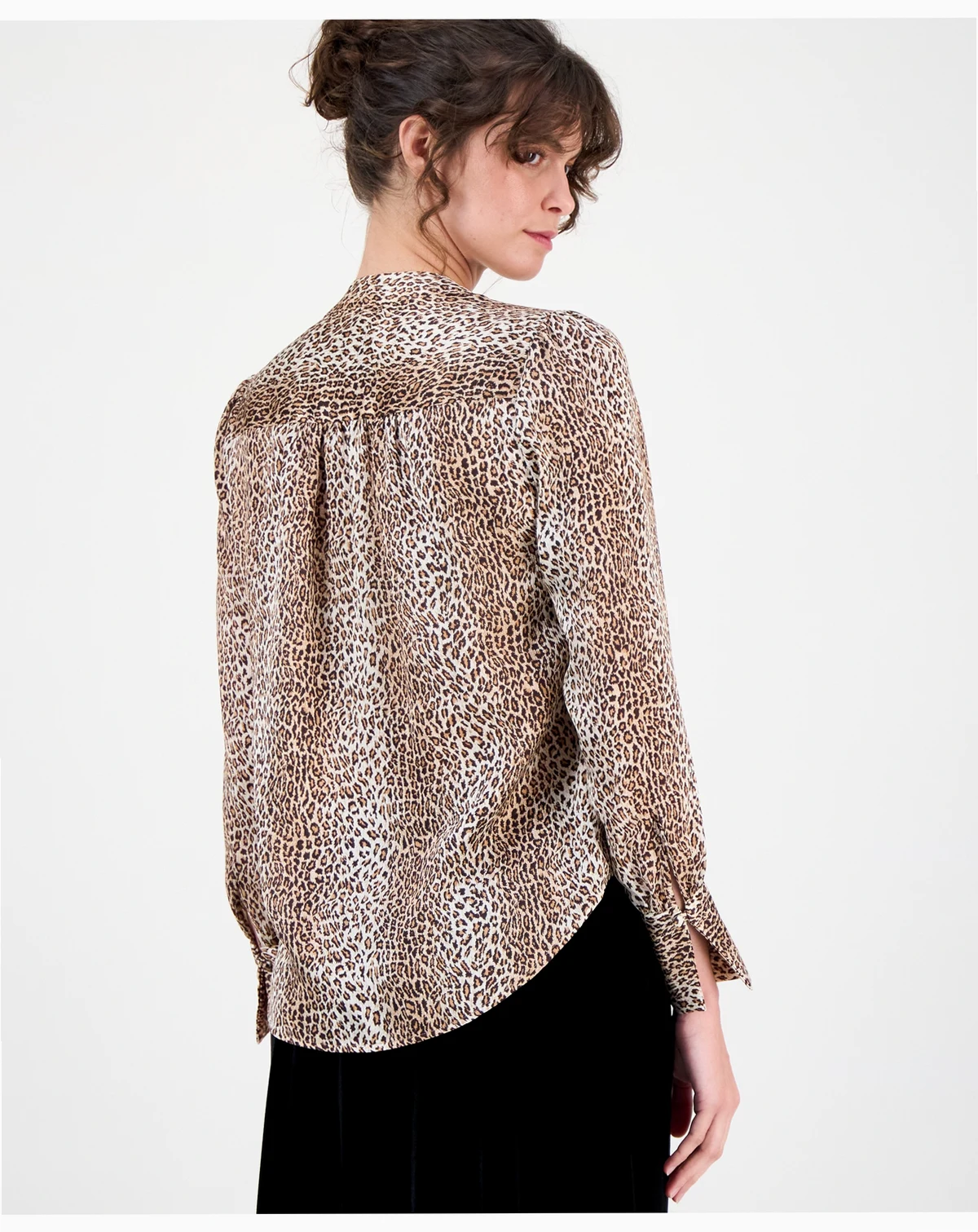 An update to a staple piece, this split-neck blouse from Anne Klein features a versatile animal print. Wear it with a tailored blazer to highlight the unique split cuffs.
