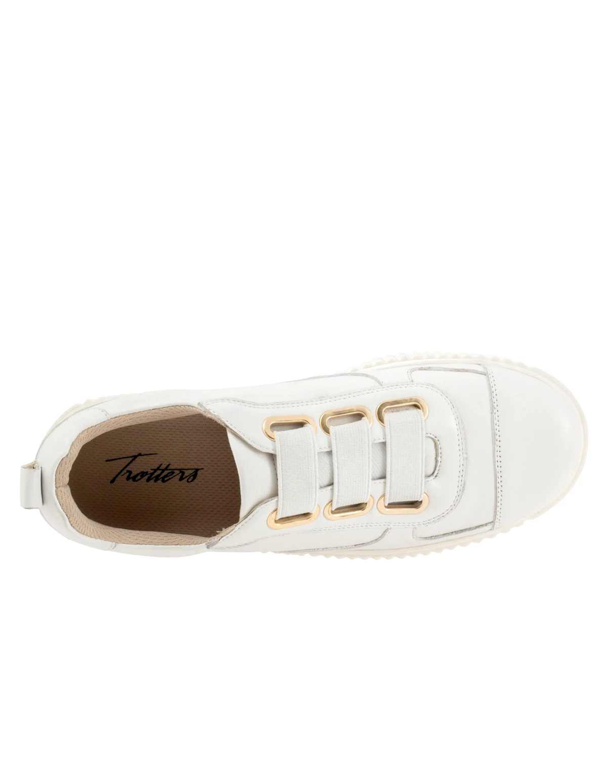 Discover the perfect blend of style and comfort with the Trotters Bliss Sneaker. Designed with a premium leather upper and elastic goring for a secure, slip-on fit, this sneaker redefines everyday ease. The removable footbed offers personalized cushioning, while the modern 1 1/2" platform heel adds a touch of lift. With its round toe and chic silhouette, the Bliss Sneaker pairs effortlessly with both casual and elevated outfits.