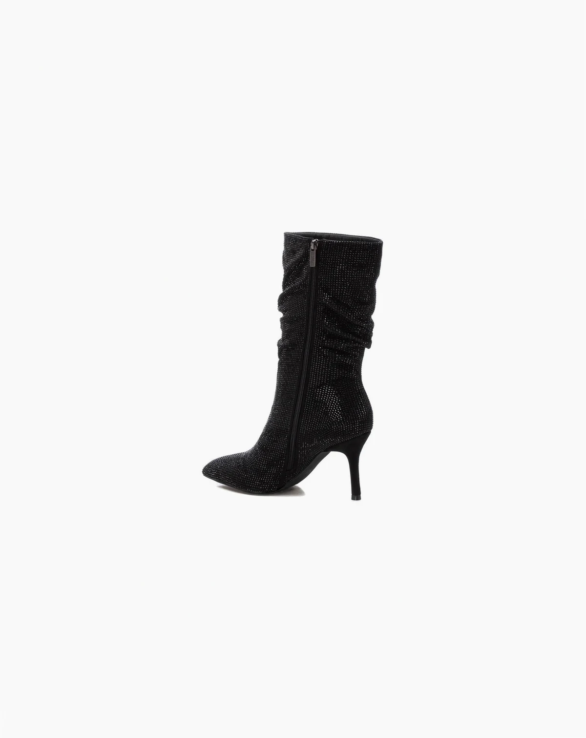 Take your style to the next level with Xti Shoes! These 2.76 in high stiletto boots are the perfect blend of casual and comfort. Trend design that goes well with every outfit. Side zipper closure. Suede upper with decorative rhinestones . Lightweight non-slip rubber sole.