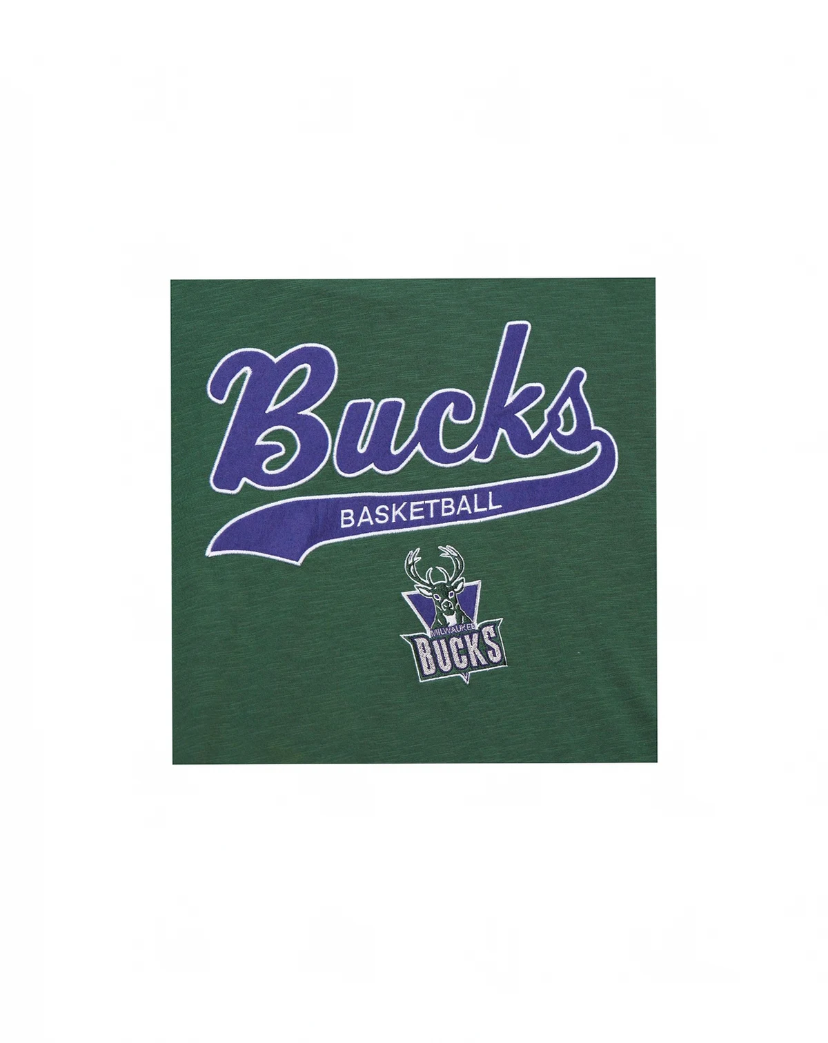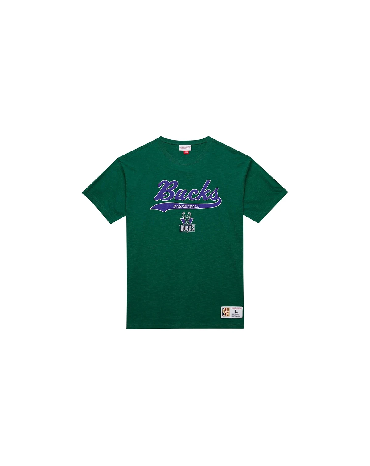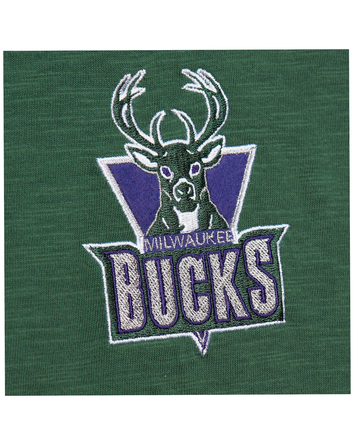 Channel the legacy of the Milwaukee Bucks with this Mitchell & Ness Hardwood Classics T-shirt. The felt team name and logo appliques are embroidered at the center chest for a striking, dimensional effect. Its soft, slub cotton construction and classic crew neck make this T-shirt an easy choice for showing off your Milwaukee Bucks fandom.