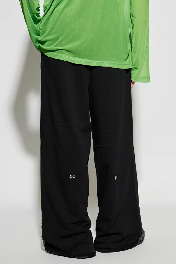 Discover an elevated expression of contemporary streetwear with these Logo Sweatpants by 44 Label Group . Masterfully tailored in a supple, substantial cotton knit, their wide-leg silhouette exudes an effortlessly modern edge, while the structured drape adds a refined, architectural presence.