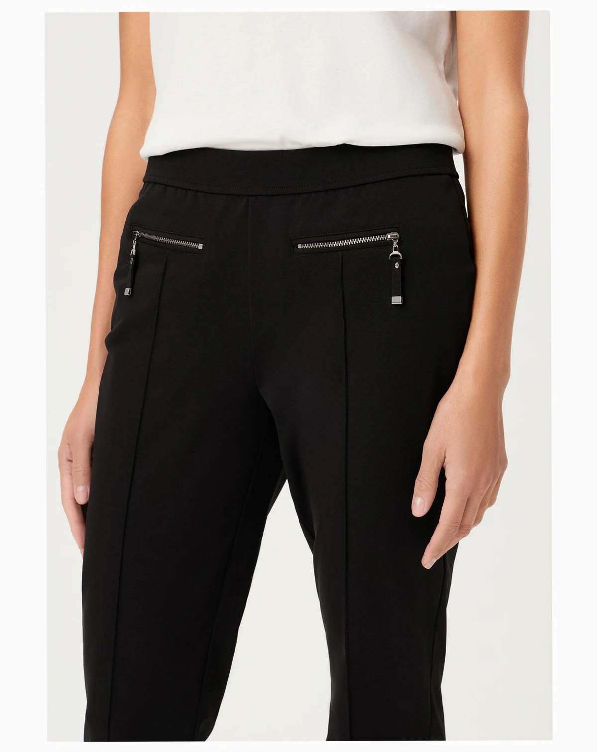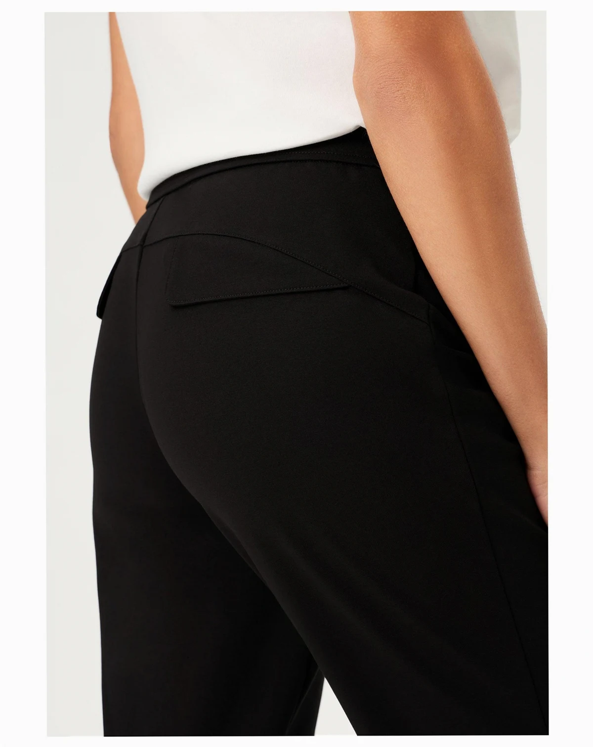 A clean, modern trouser designed for versatile styling, balancing a sleek silhouette with sporty, elegant details.