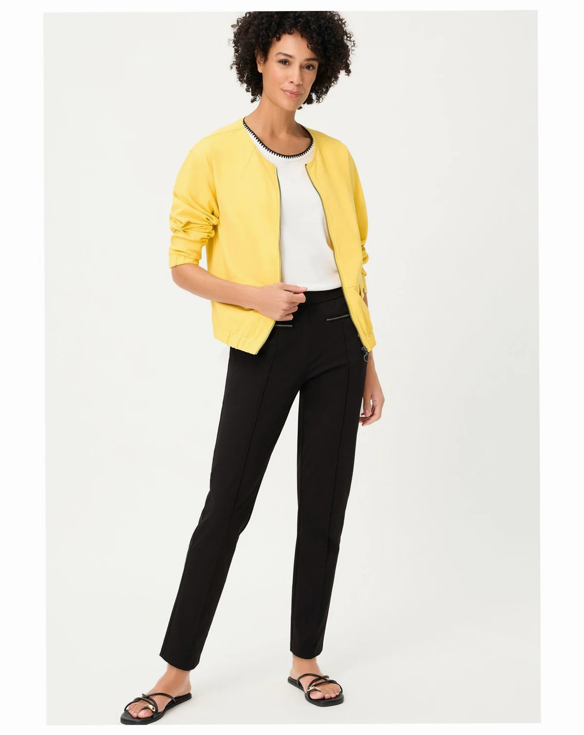 Cut in the Olsen Mona Slim fit, it offers a flattering slim leg enhanced by a shaped back yoke that subtly emphasizes the figure.; Total Length(apx.) - 40 in. Inseam Length(apx.) - 30 in. Leg Opening - Straight Closure type - Elastic Belt Loops - None Waist Fit - Mid Rise