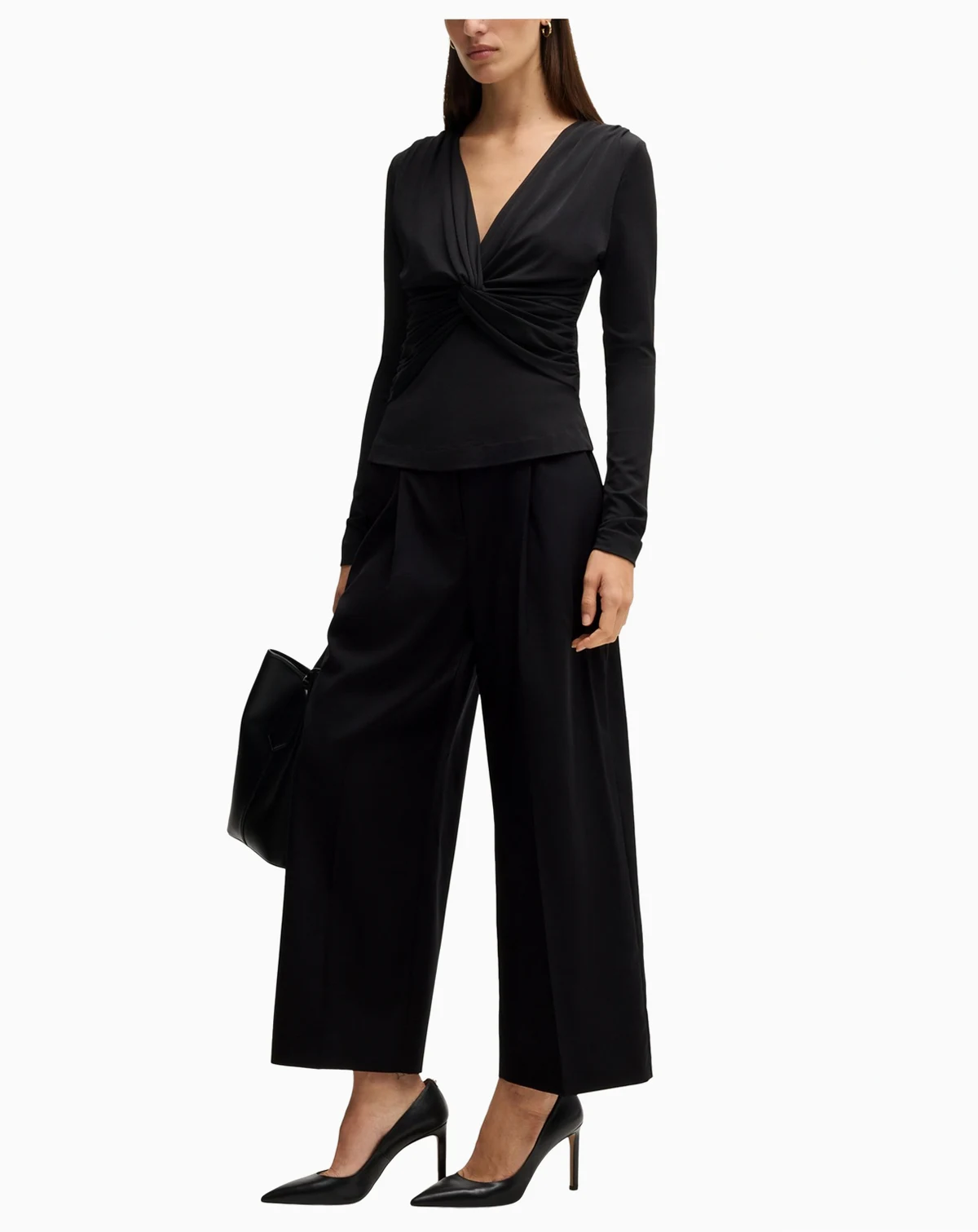 High-waisted trousers by BOSS Womenswear. This cropped pair is cut to a straight fit with a buttoned tabs at the waist.