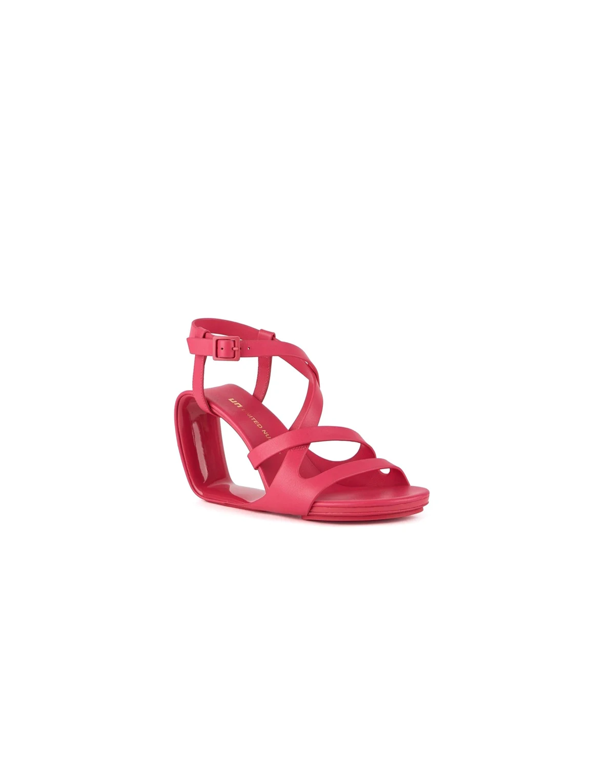 The Mobius Sia Hi is a strappy sandal with a hollow loop-shaped heel and a single band that forms the sole, heel, footbed, and upper of the shoe. The fiber-reinforced nylon heel is the strongest part of the shoe, while its open wedge shape keeps it incredibly light. United Nude's launch product, the Mobius, was revealed in 2003 and has since become an icon in the world of design. The style was born from a conceptual development of the Mobius strip, a single-sided surface with no boundaries. Its distinct shape was inspired by transforming the frame of Mies van der Rohe's Barcelona Chair into a single band, uniting the upper, sole, footbed and heel into one infinite piece.