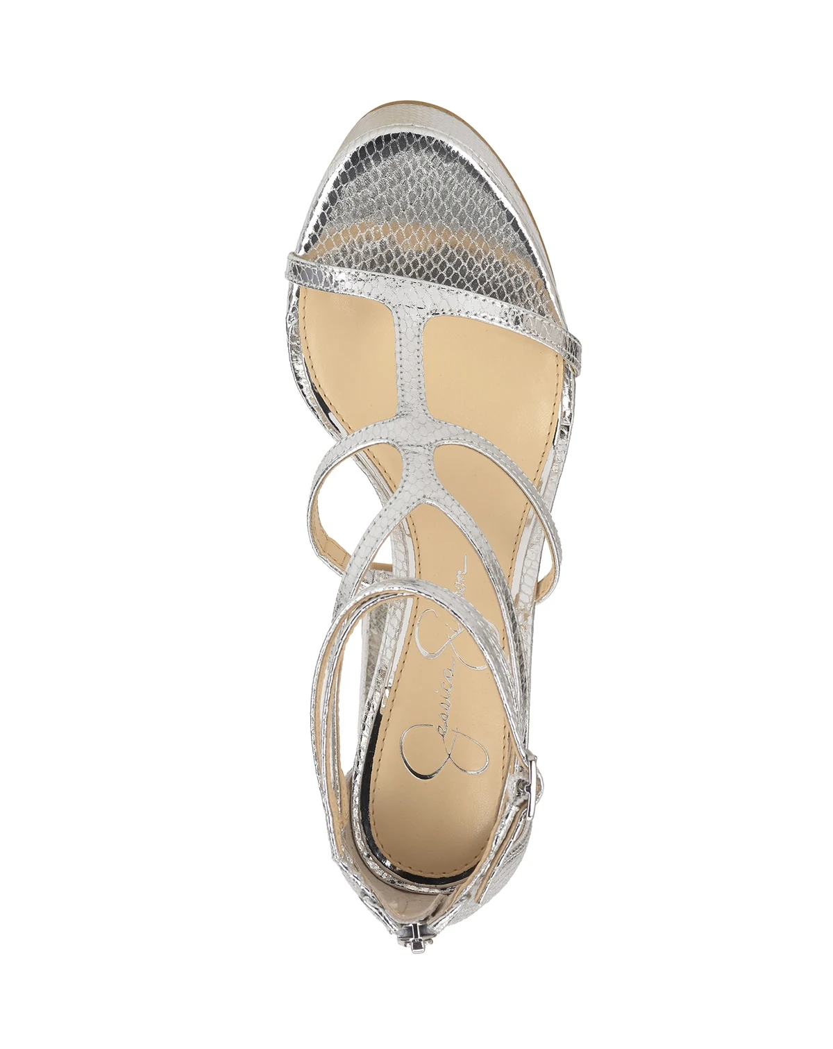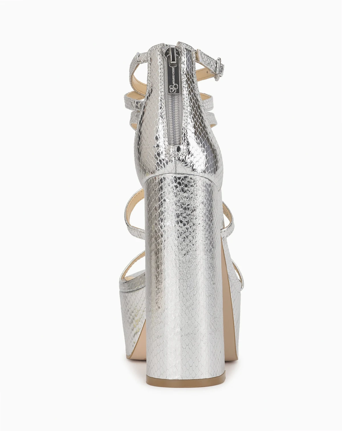 Slender straps top towering platform heels with caged appeal in the gorgeous Aamina sandals from Jessican Simpson.