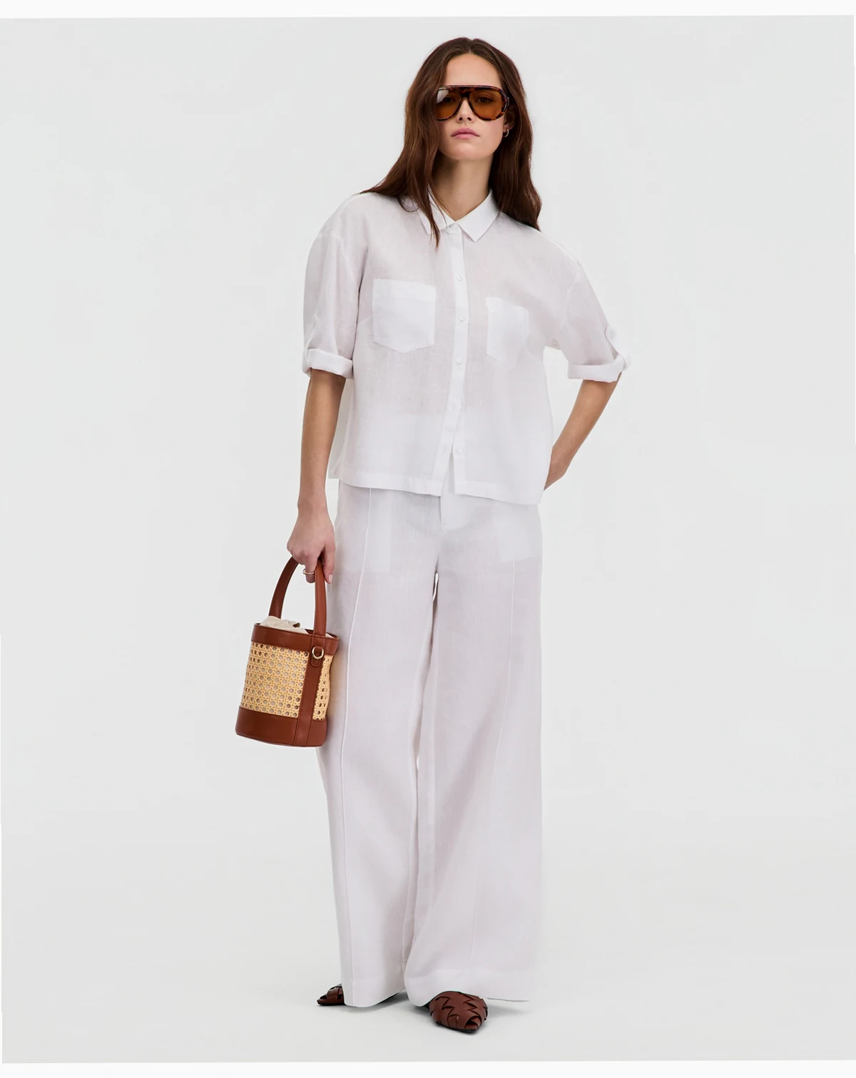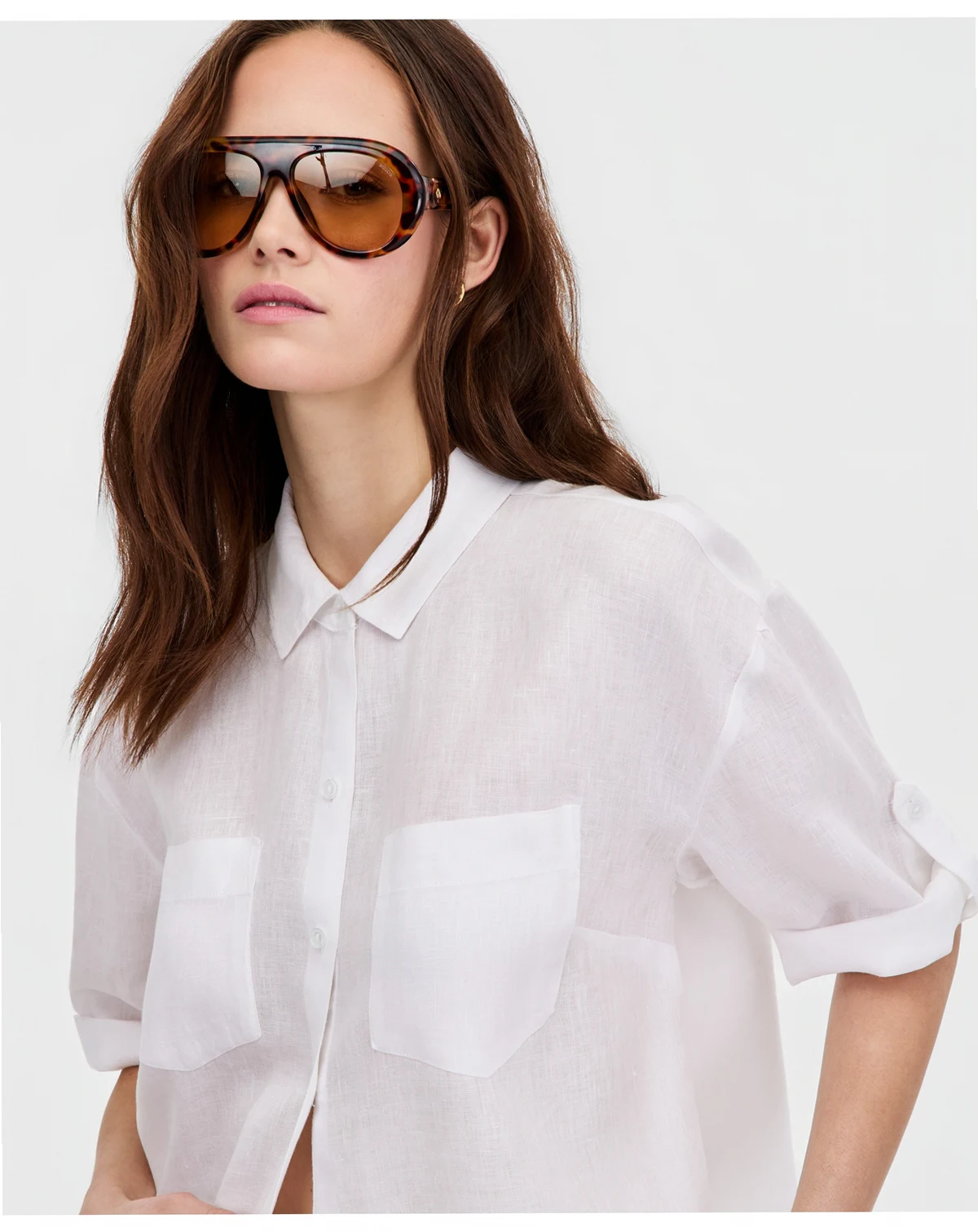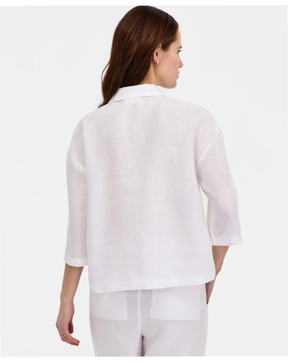Women's 100% Linen Solid Roll-Tab Camp Shirt, Created for Macy's