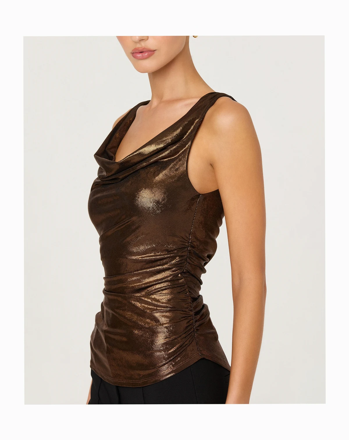 Draping elegantly with a cowl neckline, this ASTR the Label top offers a sleeveless and sophisticated design. The pull-on construction ensures a smooth and flattering fit.