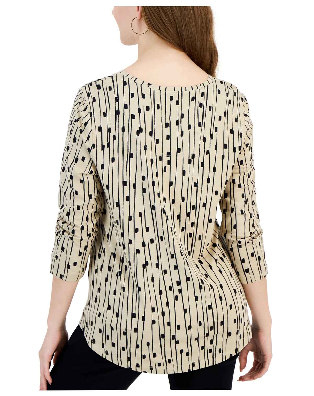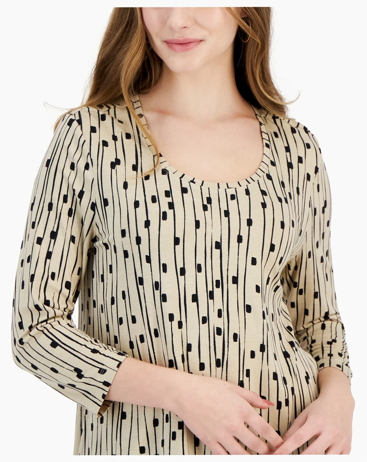 Petite Printed 3/4-Sleeve Rayon Span Top, Created for Macy's