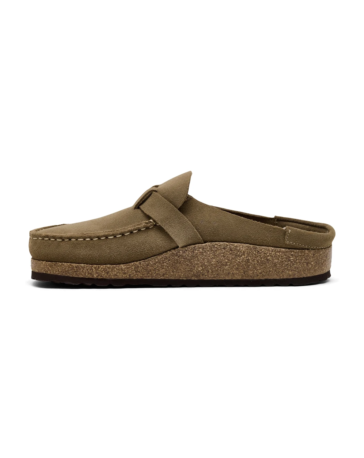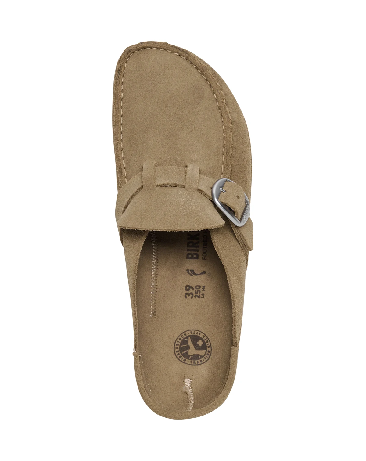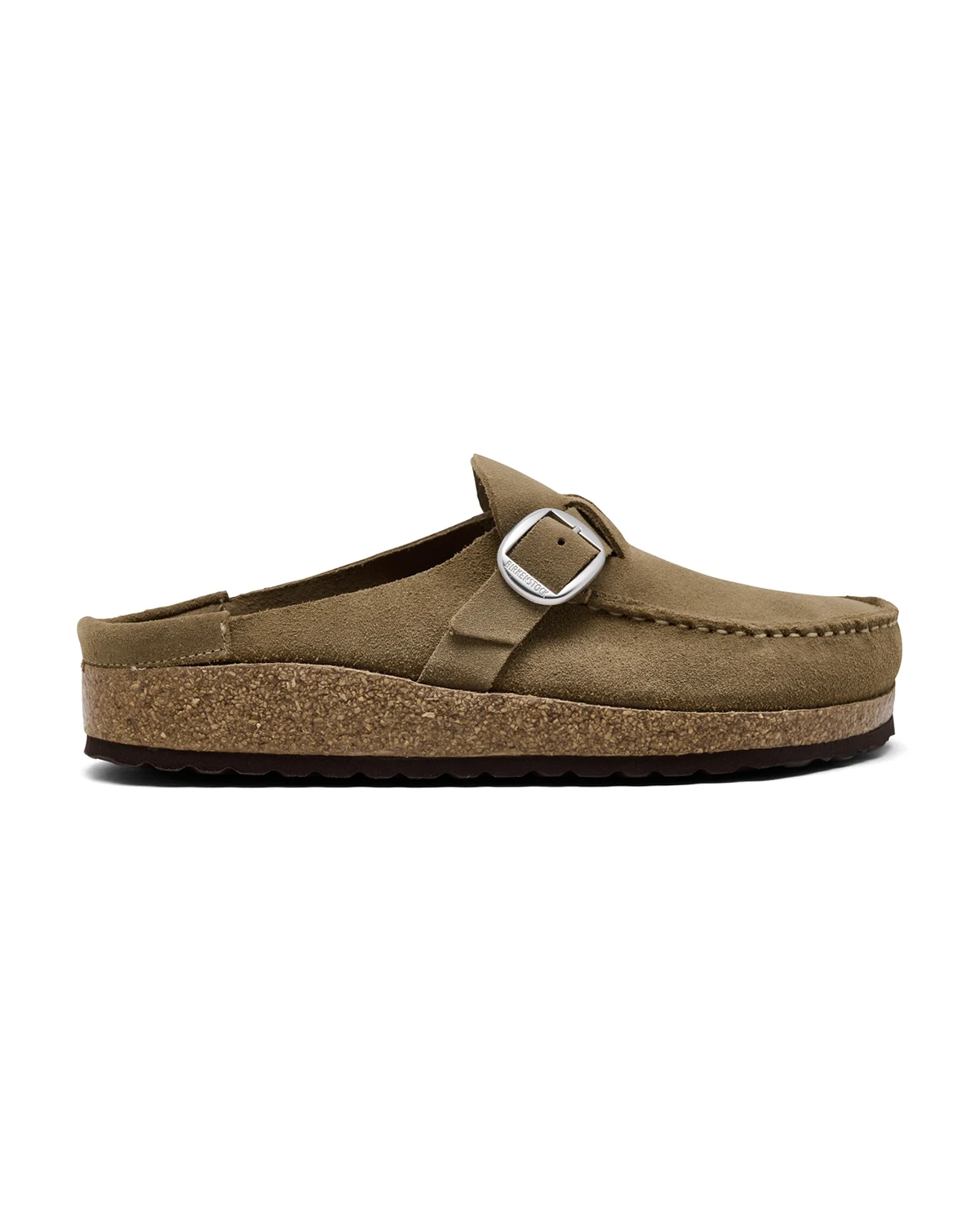 The soothing support you'd expect from Birkenstock combines with a classic moccasin-clog style silhouette on the Birkenstock Women's Buckley Suede Leather Clogs. Velvety smooth suede leather composes the upper, while a cork footbed locks in lavish comfort underfoot.