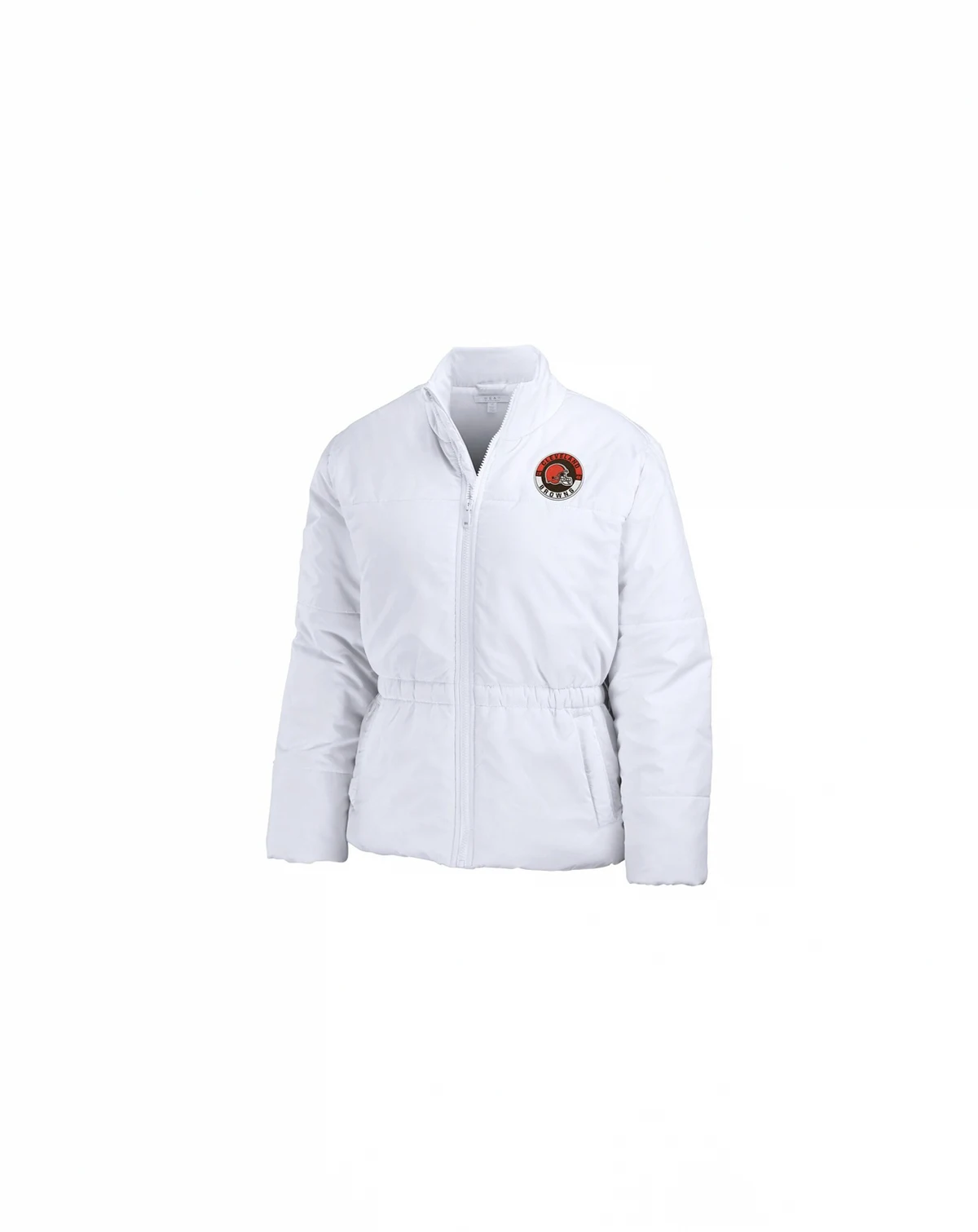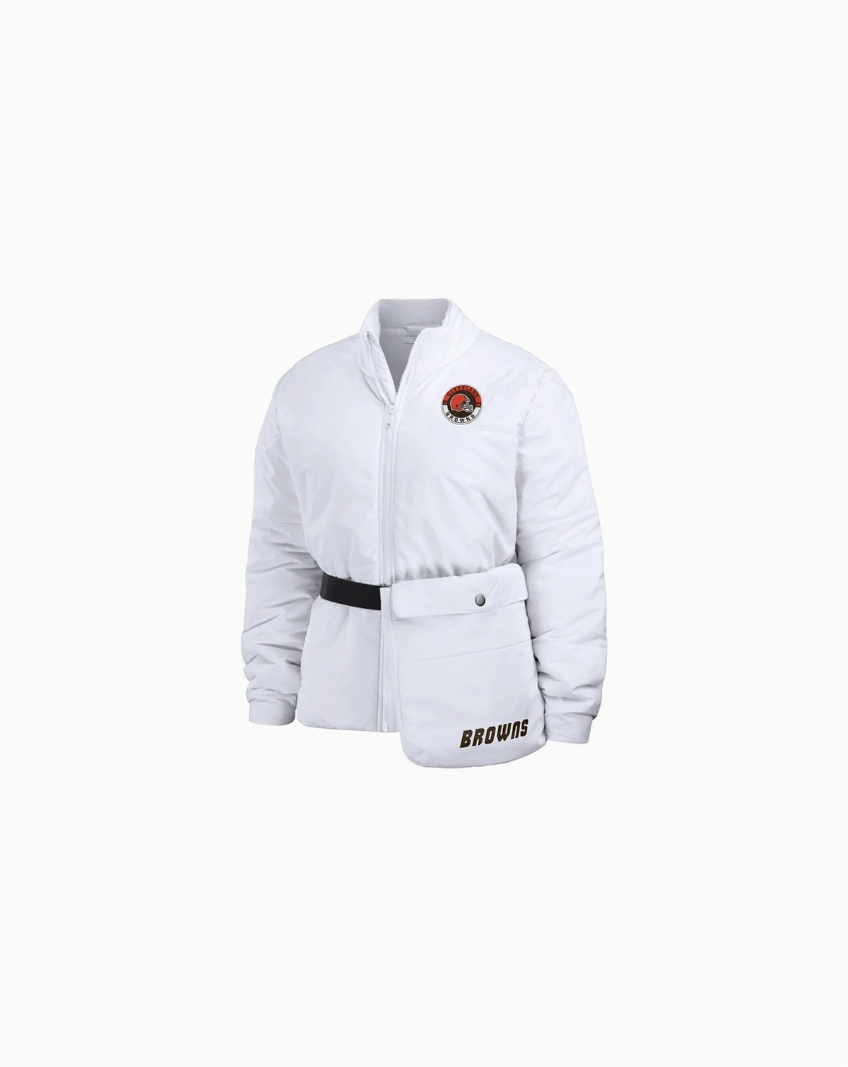 Keep your style game strong in colder weather with this Cleveland Browns Packaway puffer jacket from WEAR by Erin Andrews. It features a removable belt and one-snap pouch, a full-zip closure for regulating temperature and a chic cinched waist. The understated Cleveland Browns details complement the clean look of this versatile, fashionable outerwear.