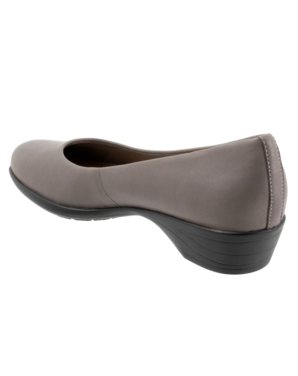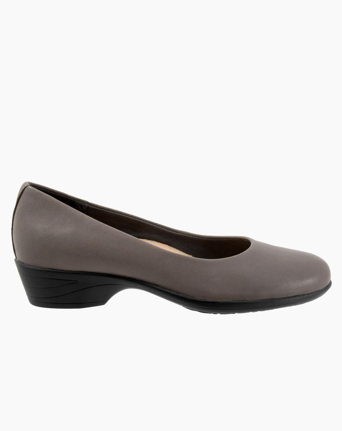 Rozalin is a casual low-heel pump that has a flexible sole and a cushioned removable footbed.