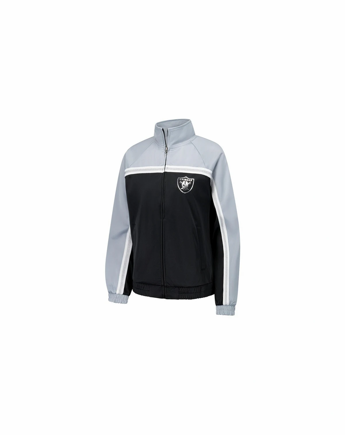 Stay warm while repping the Las Vegas Raiders with this G-III 4Her by Carl Banks Post Game Full-Zip Track Jacket. This jacket is crafted from polyester fabric, ensuring both durability and comfort for those cooler game days. With the Las Vegas Raiders logo displayed prominently on the left chest and their wordmark across the back, your fandom will be on full display wherever you go.