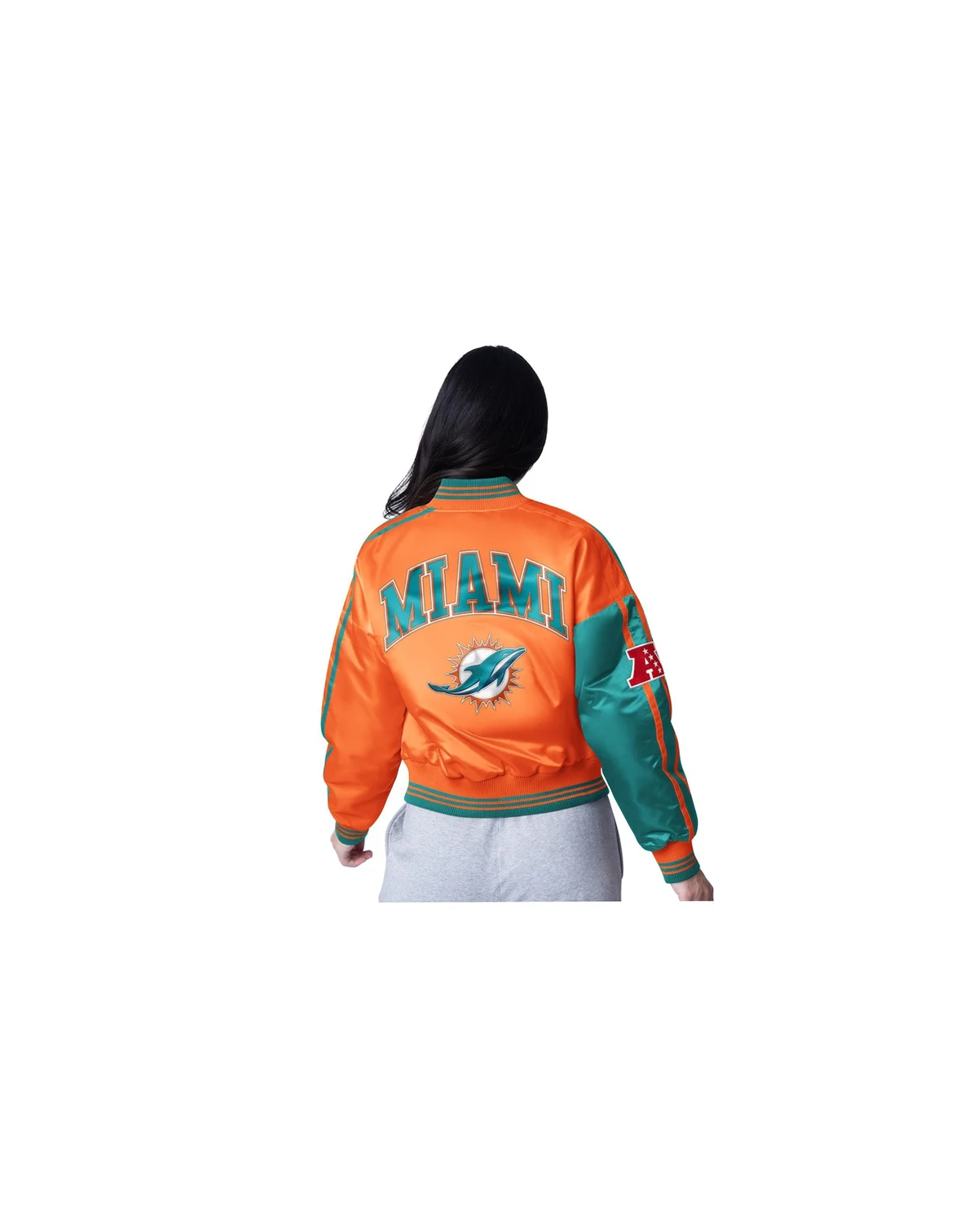 Flaunt your Miami Dolphins pride with this Starter Cropped Full-Snap Jacket. This stylish jacket features twill applique team graphics across the chest and back, letting you show off your Miami Dolphins pride in style. The quilted lining adds an extra layer of warmth, making it perfect for those chilly game days or evenings out.