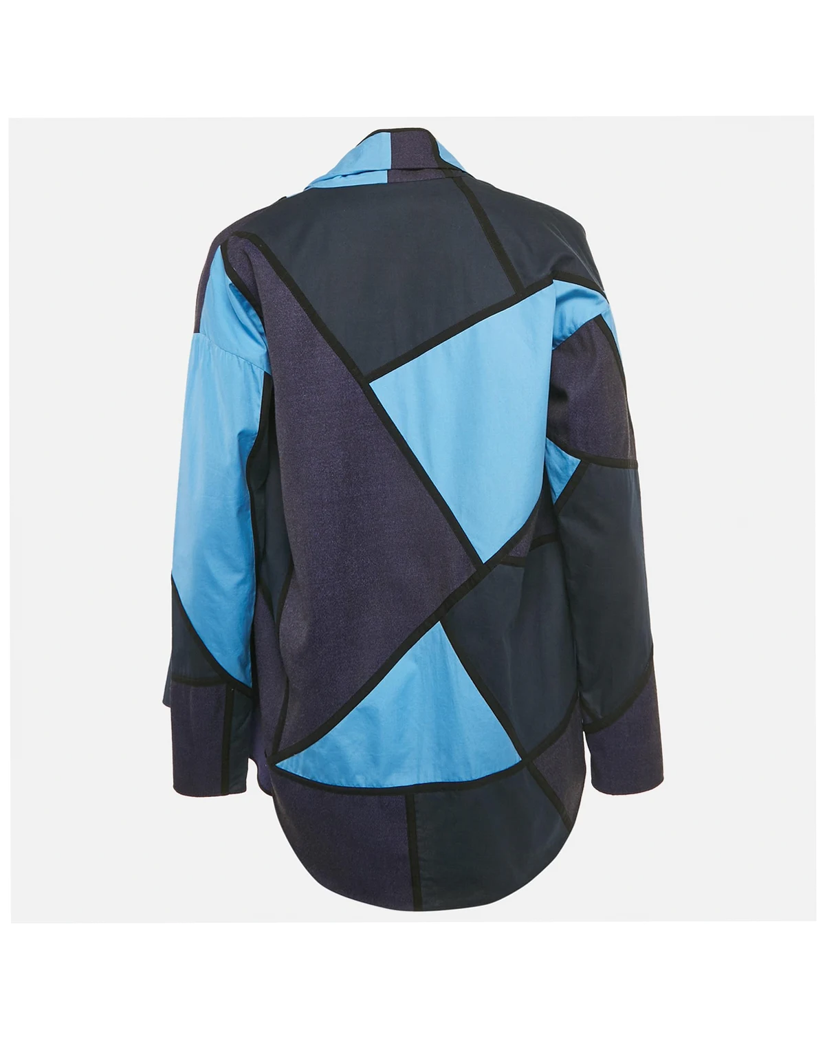 Women's Blue Patch Work Cotton Open-Front Shrug