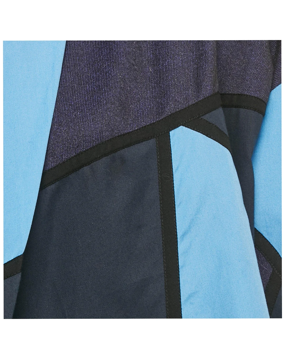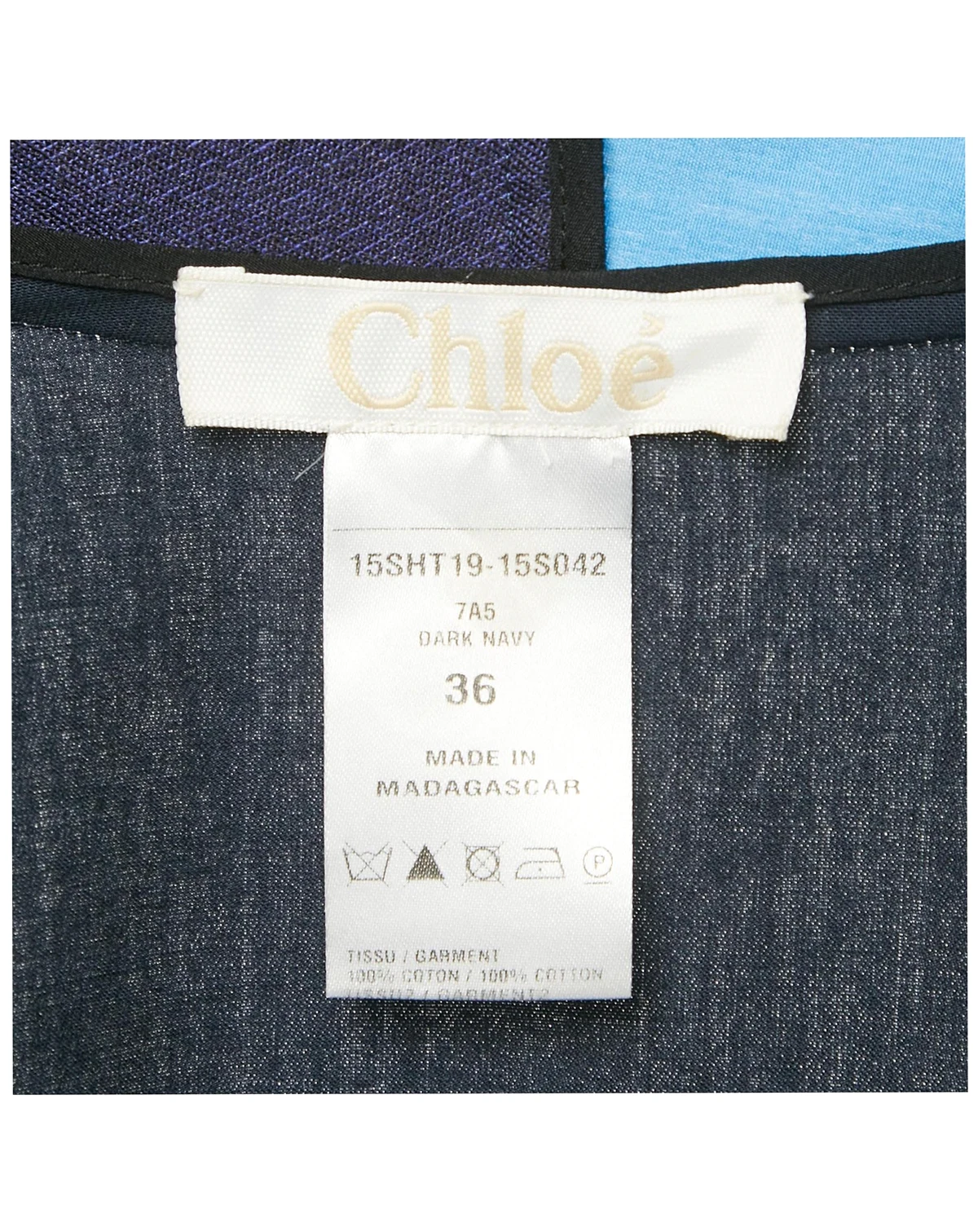 Chloe s shrug uses a mix of blue panels for a graphic easygoing look. The open front design gives it a relaxed feel and the lightweight cotton makes it comfortable for everyday wear.