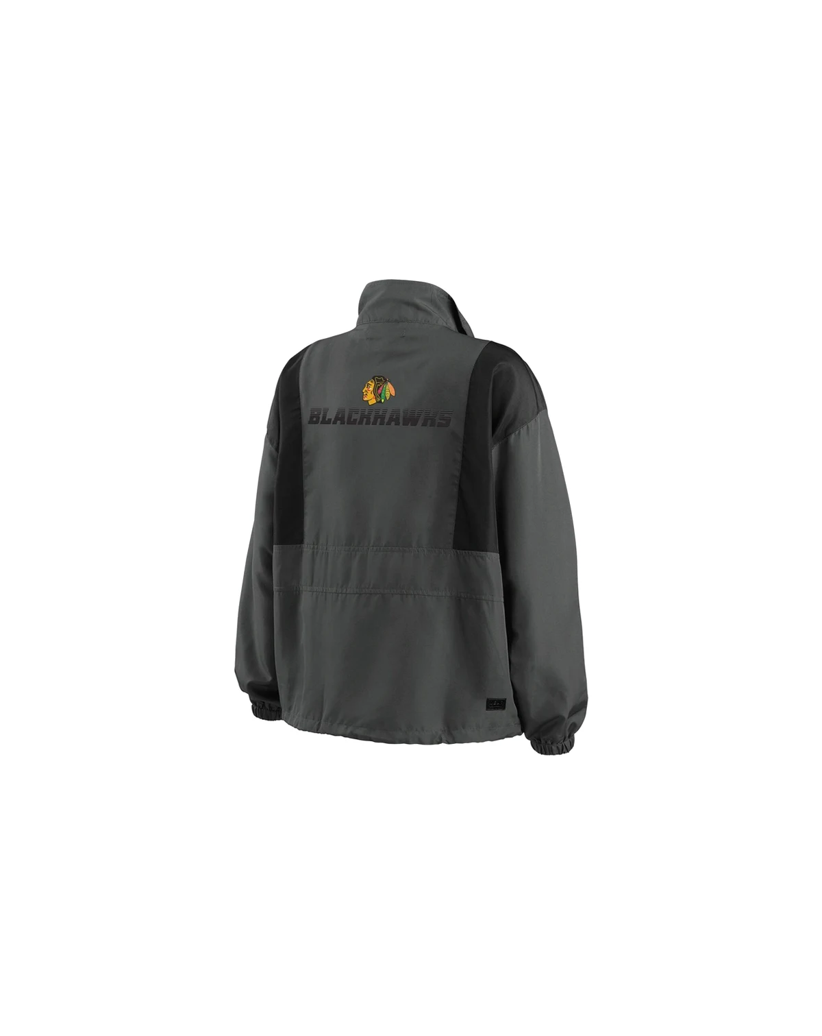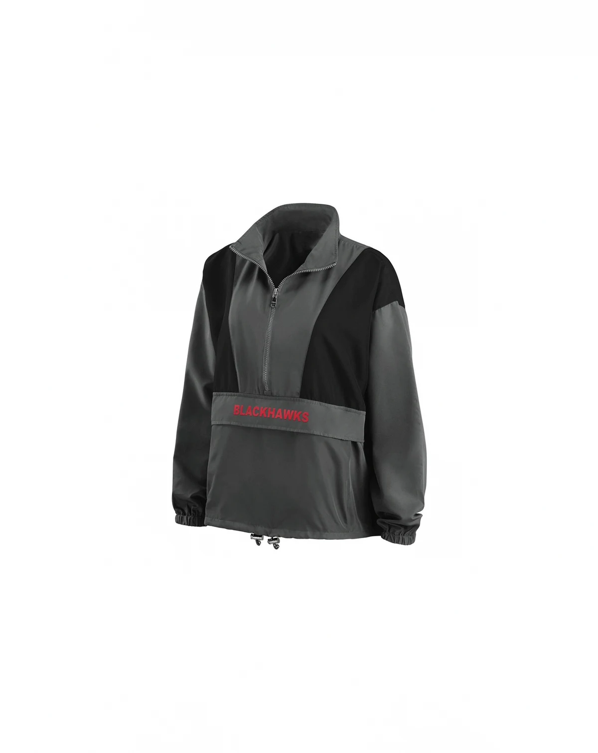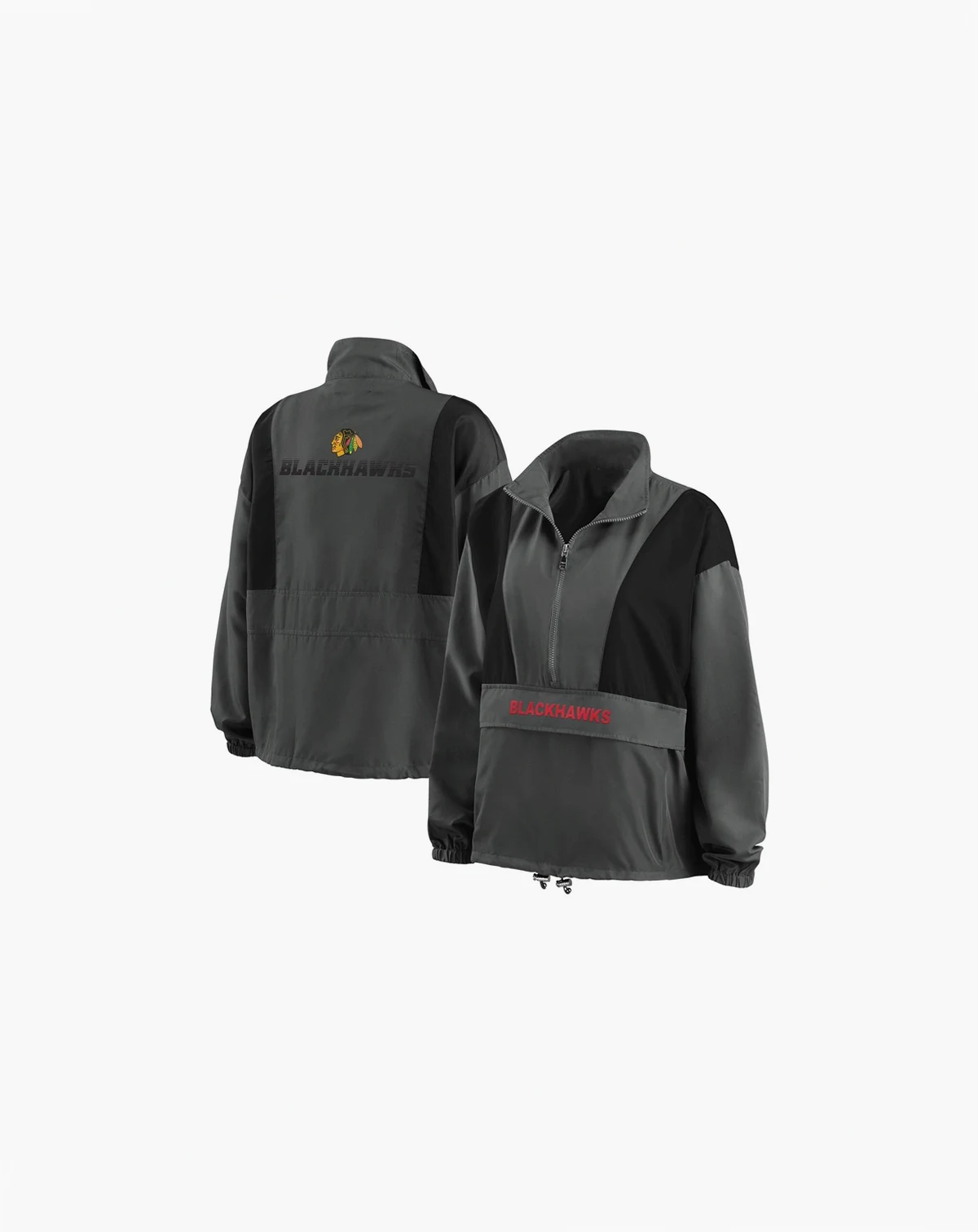 Support your Chicago Blackhawks with a functional piece of outerwear this season, the Popover Packable half-zip jacket from WEAR by Erin Andrews. Along with elastic cuffs and an adjustable waist hem, it features a half-zip closure and Olympic collar for maximum coverage. Chicago Blackhawks graphics are displayed on both the front and back for a constant showcase of your favorite team.