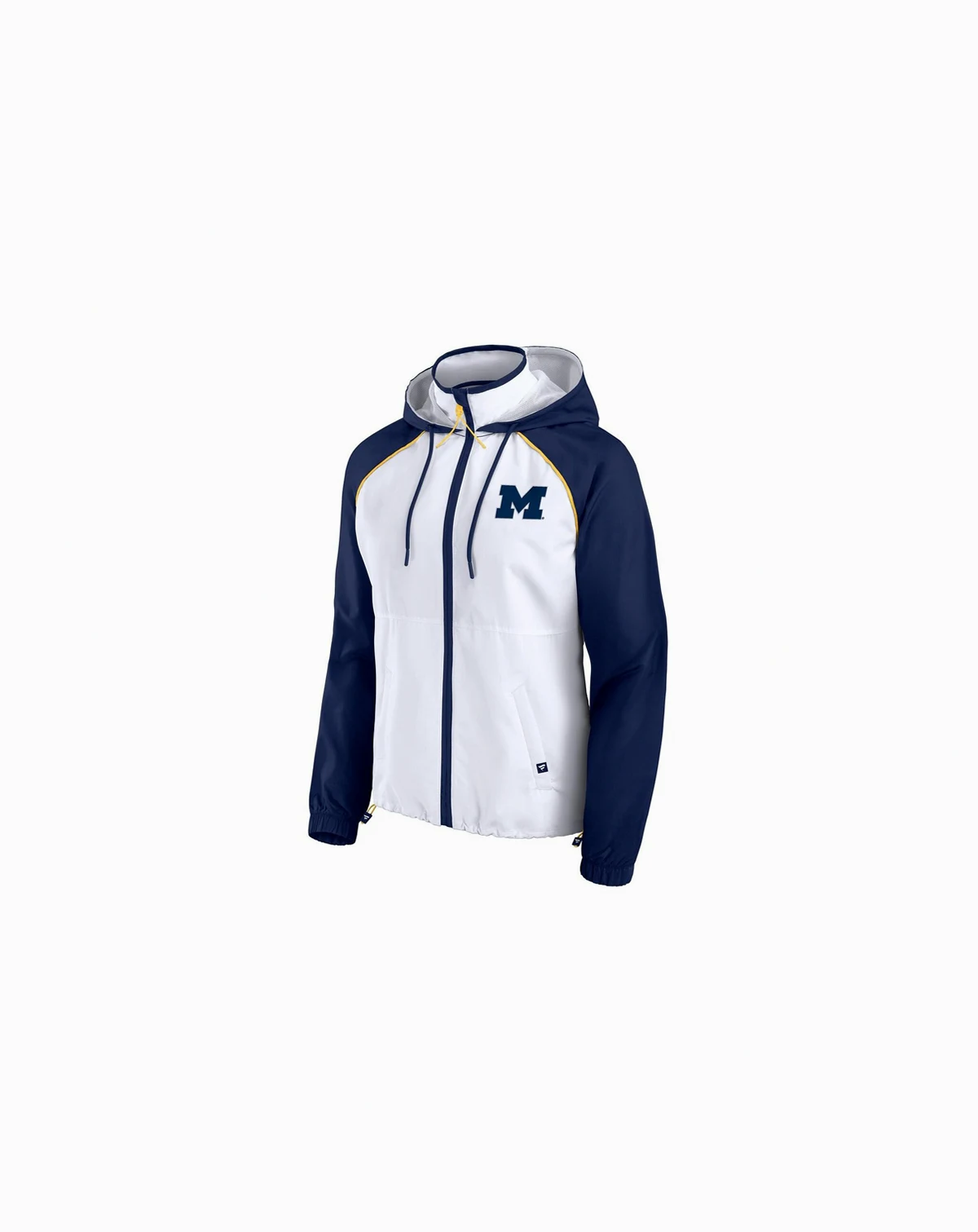 Stay warm and show your Michigan Wolverines spirit with this Fanatics Full-Zip Anorak Hoodie Jacket. This lightweight jacket is perfect for mild temperatures, featuring an adjustable hood and mock collar for added protection from the elements. With its convenient front pockets, raglan sleeves and adjustable drawcord hem, it offers both practicality and a stylish fit that's perfect for cheering on the Michigan Wolverines.