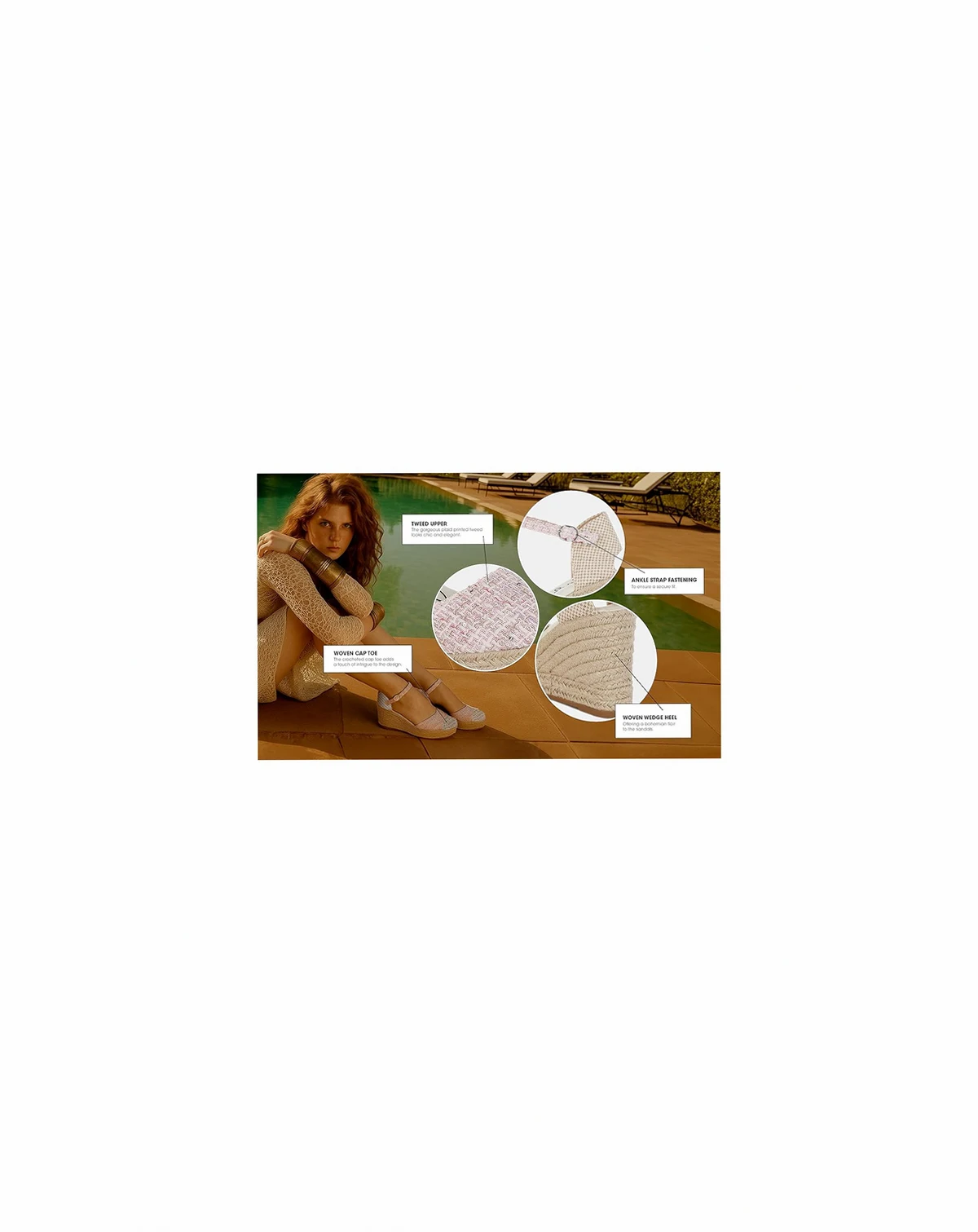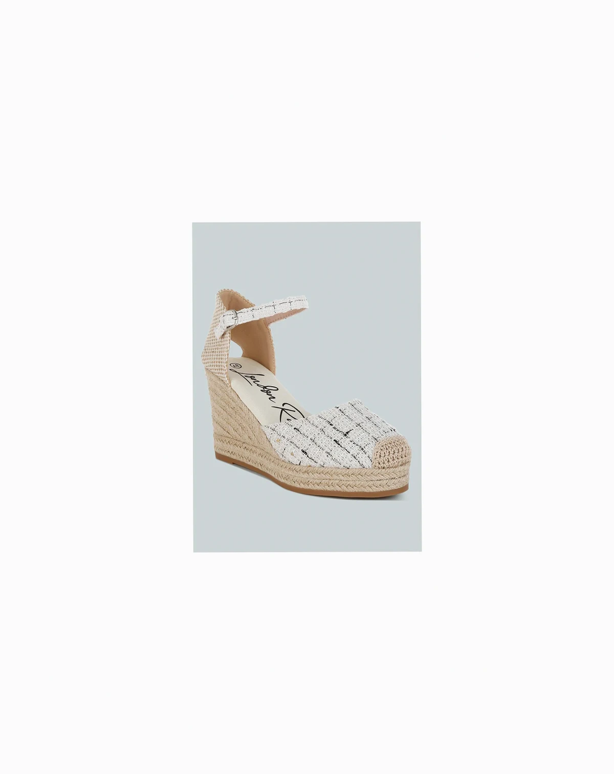 Say hello to your new favorite wedge sandals! Featuring a charming woven 4-inch wedge heel and a closed round toe, these London Rag stunners combine style and comfort. Crafted from elegant tweed fabric, they're the perfect choice for summer vacations, brunch dates, and everything in between. Type: Wedges Upper Material: Tweed Fabric Outer Sole: TP Rubber Closed Round Toe Woven Wedge Heel Supportive Counter Detail Pin Buckle Ankle Strap Comfortable Cushion Insole Heel Height: 4 inches SH5501