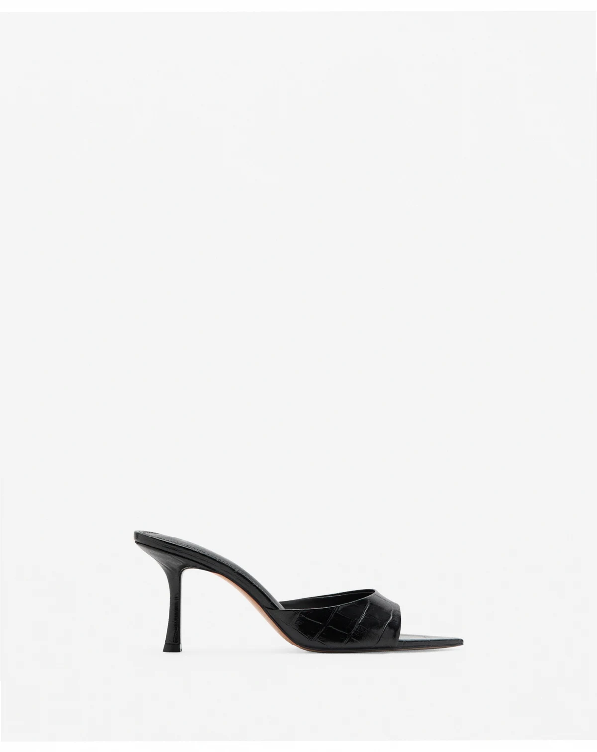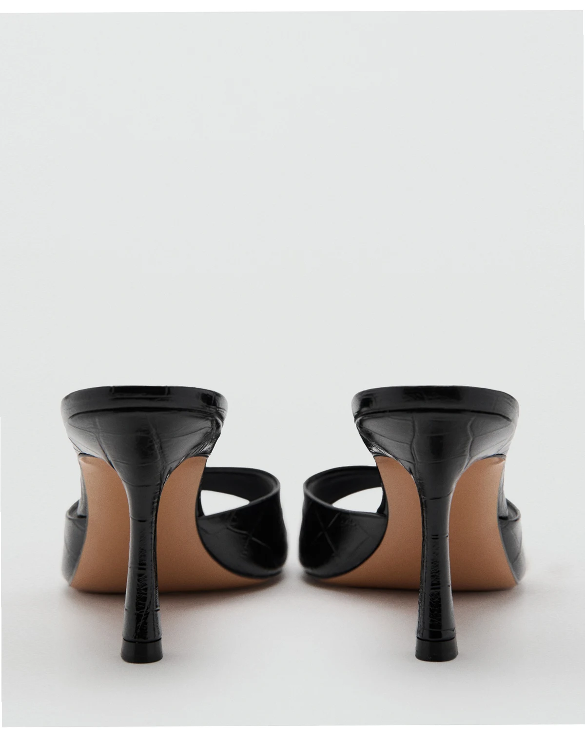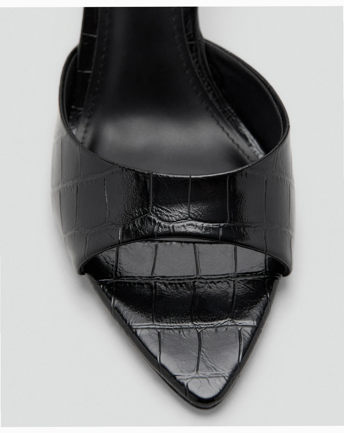 Make a statement with Croc-Effect Heeled Sandals from Mango. Made from crocodile-effect fabric, these sandals feature backless and 8 cm stiletto-heels.