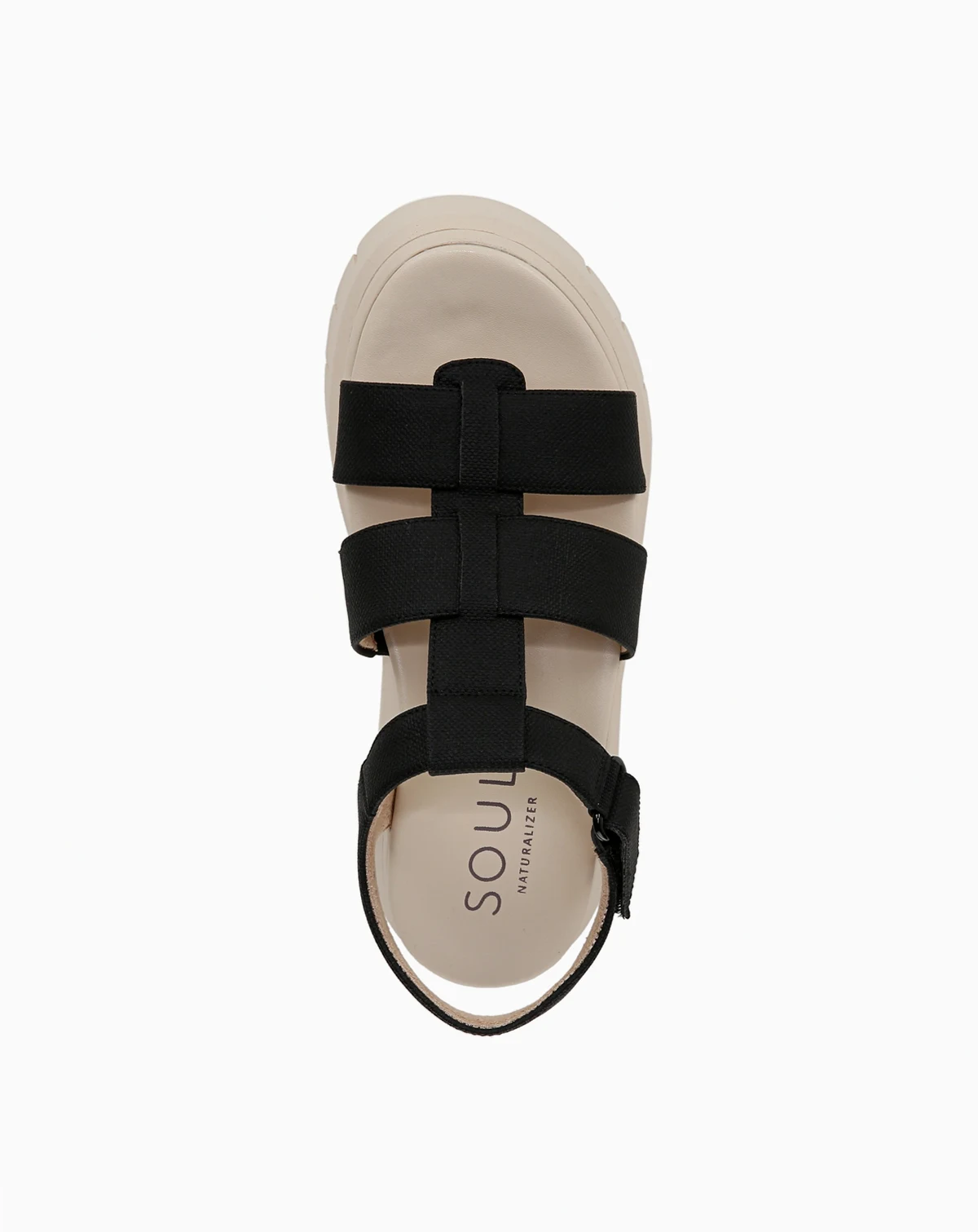 Sandals from SOUL Naturalizer // Sun. Sand. Sea. A lug sole adds utilitarian flare to your classic fisherman sandal. Flexible platform sandal with a sporty sole. Synthetic upper with linings and an open toe. Adjustable hook-and-loop closure. ContourFIT technology: sculpted insole, soft foam lining, arch support with memory foam, sock lining, lightweight and flexible outsole. 1.25-inch platform, 1.5-inch heel. WHY YOU'LL LOVE IT: Forever elegant silhouettes with all day wearability, available in an inclusive range of sizes and widths. Designed to the contours of a woman's foot. The Beautiful Fit. Since 1927.