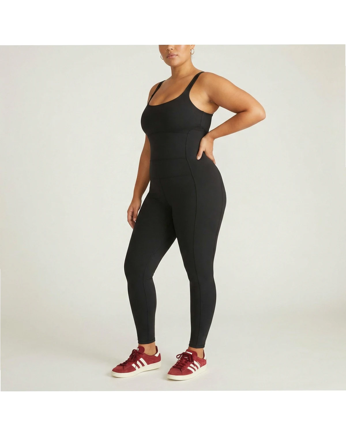 This bodysuit features a contoured waistband, adjustable straps, and a higher neckline for secure coverage. Crafted from sweat-wicking fabric developed by Universal Standard, it offers a soft, next-to-naked sensation as you move. The design does not include a built-in bra, allowing you to choose your preferred support. Ideal for yoga, pilates, or any activity, this bodysuit combines comfort, versatility, and a sleek fit for all-day wear.