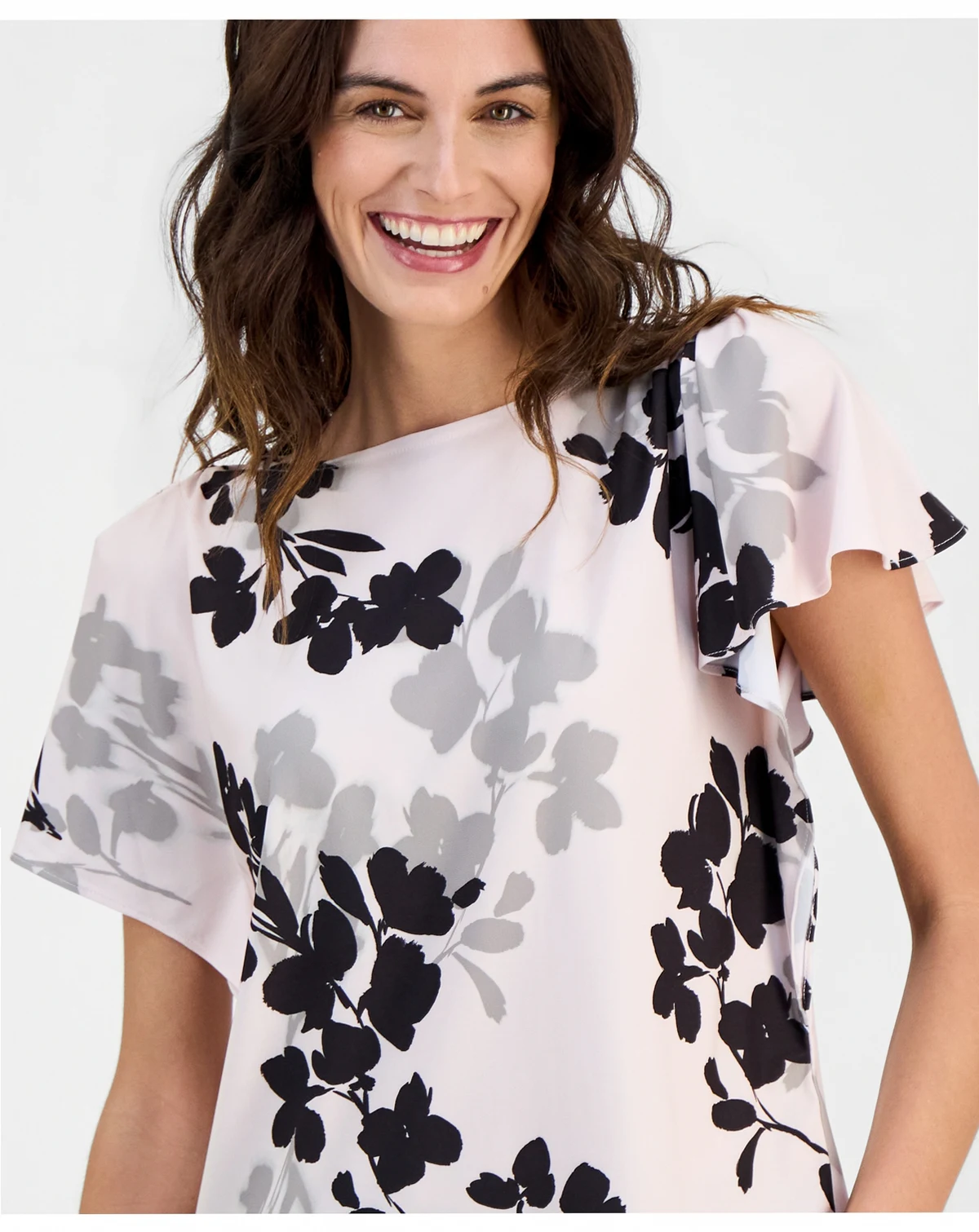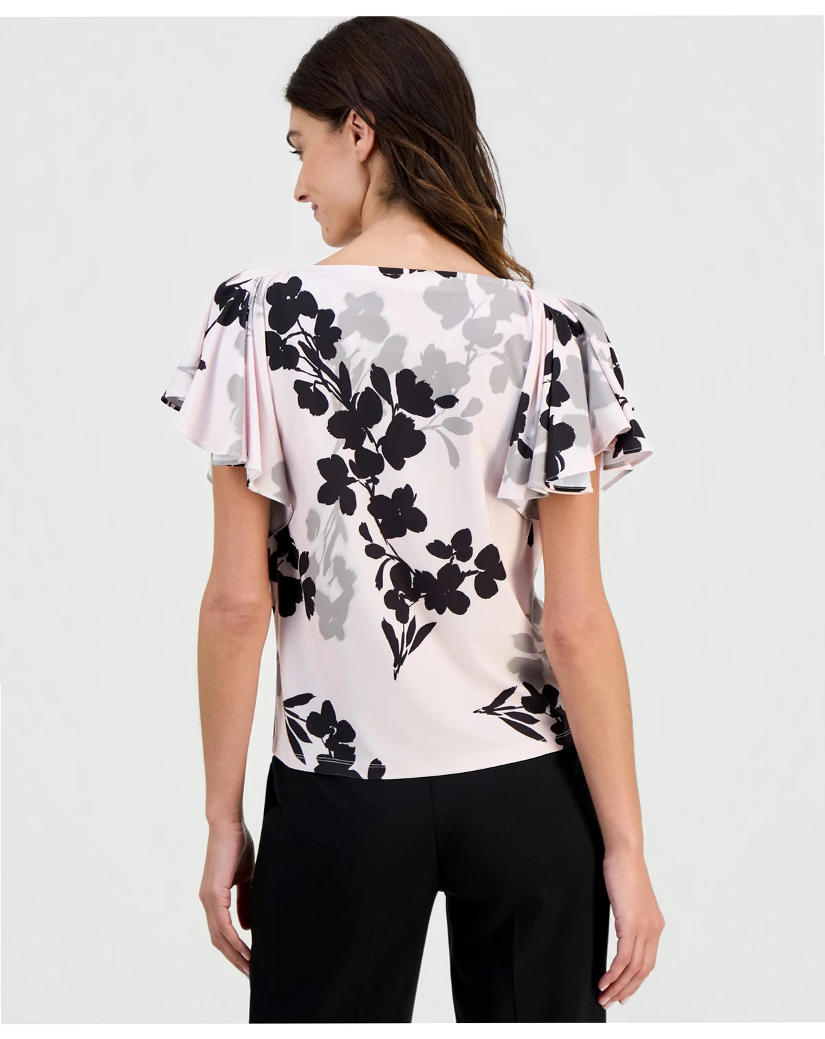 Refresh your workday style with this women's floral print top from Anne Klein, featuring delicate flutter sleeves that add an airy finish to your look.