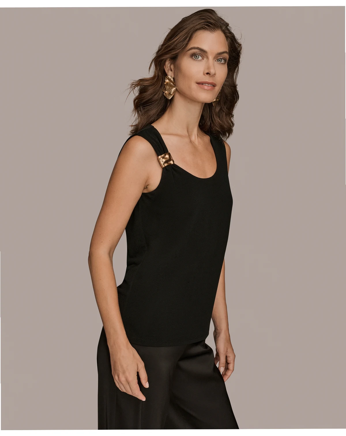 Smooth, versatile, and stylish, this Donna Karan New York tank top offers a sleek silhouette and a scoop neck that layers beautifully under jackets or stands out on its own. The pull-on feature makes it easy to wear.
