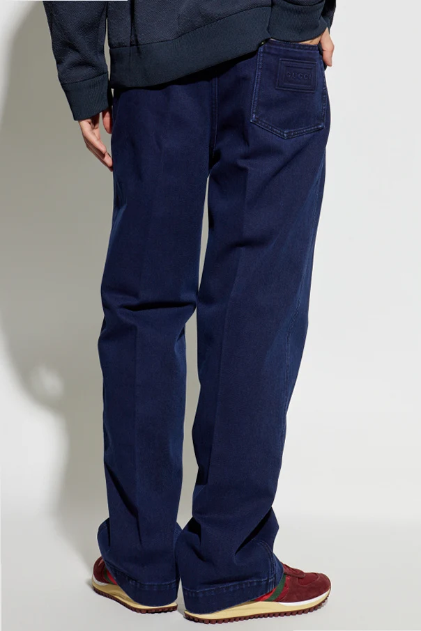 Immerse yourself in understated sophistication with these straight-fit jeans from Gucci's exclusive menswear collection. Expertly crafted under the creative direction of Sabato De Sarno, this classic silhouette offers a regular-leg cut with an elevated or mid-rise waist, exuding refinement at every seam.