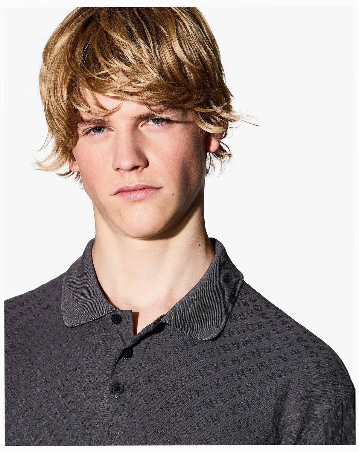 Elevate your wardrobe with this sleek polo shirt crafted from premium mercerized cotton. Featuring a sophisticated tonal Armani Exchange all-over print, this shirt combines luxury and style for a refined look. Perfect for any occasion, it offers both comfort and elegance in one versatile piece.