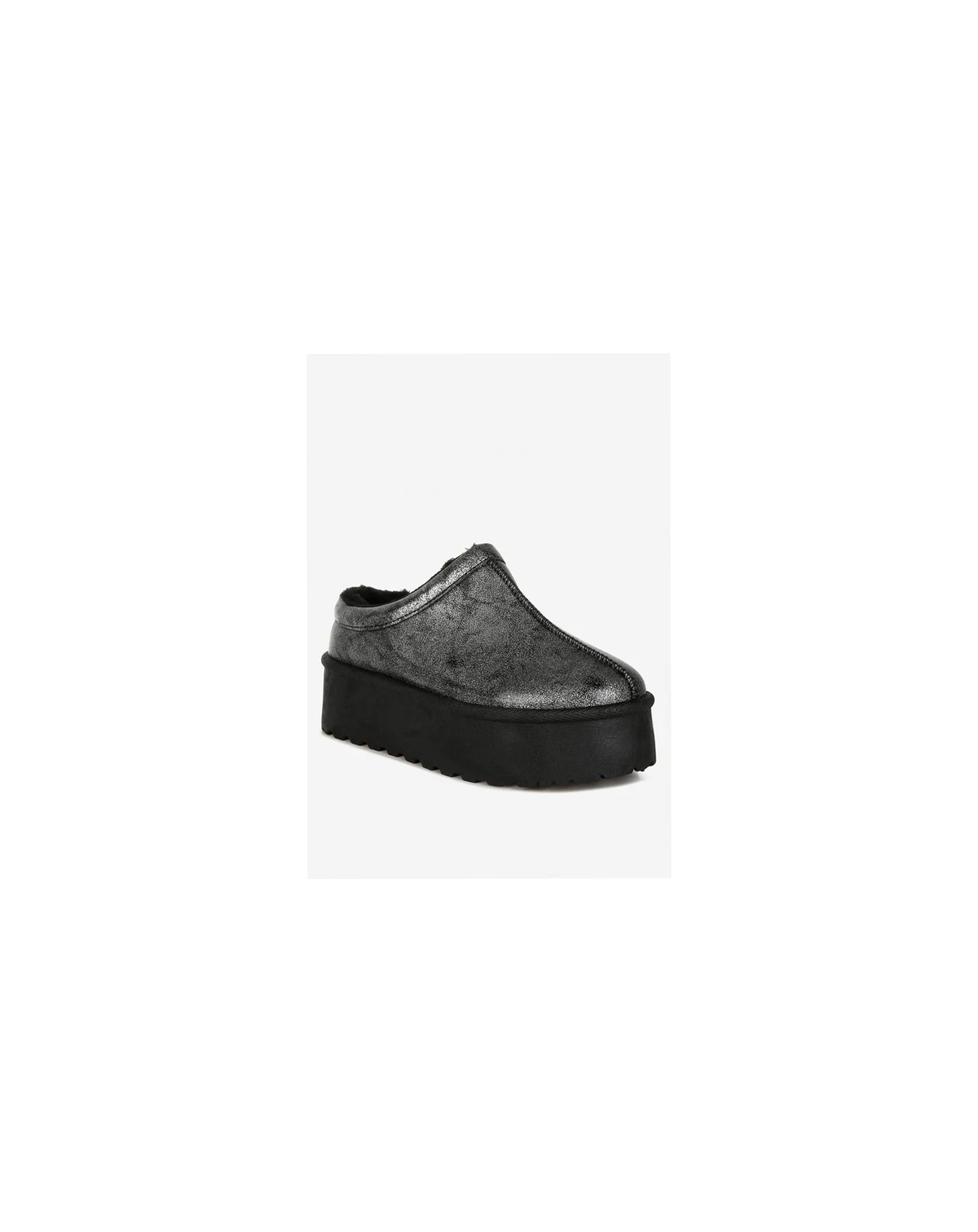 Introducing our chunky classic slip-ons ”where warmth is redefined. Featuring a roomy round toe, comfortable 2-inch flatform heels, and soft cushioned insoles, these flatform sliders feel like walking on clouds with a hint of shine.