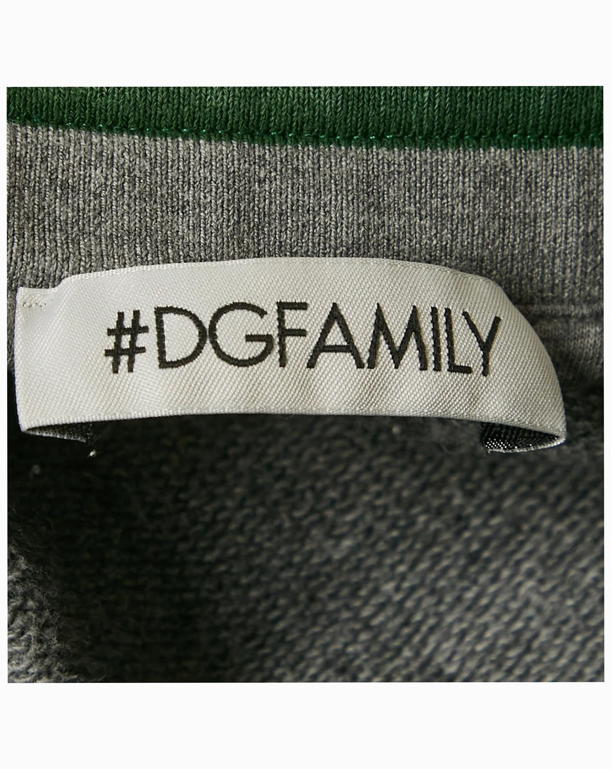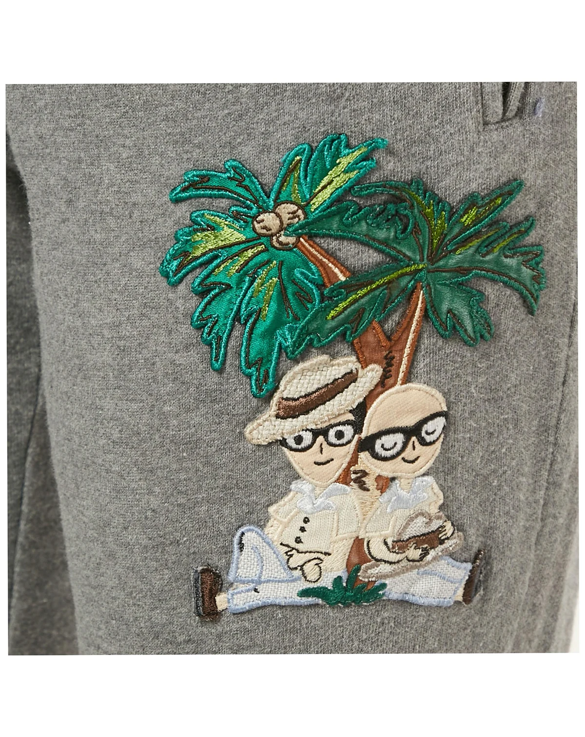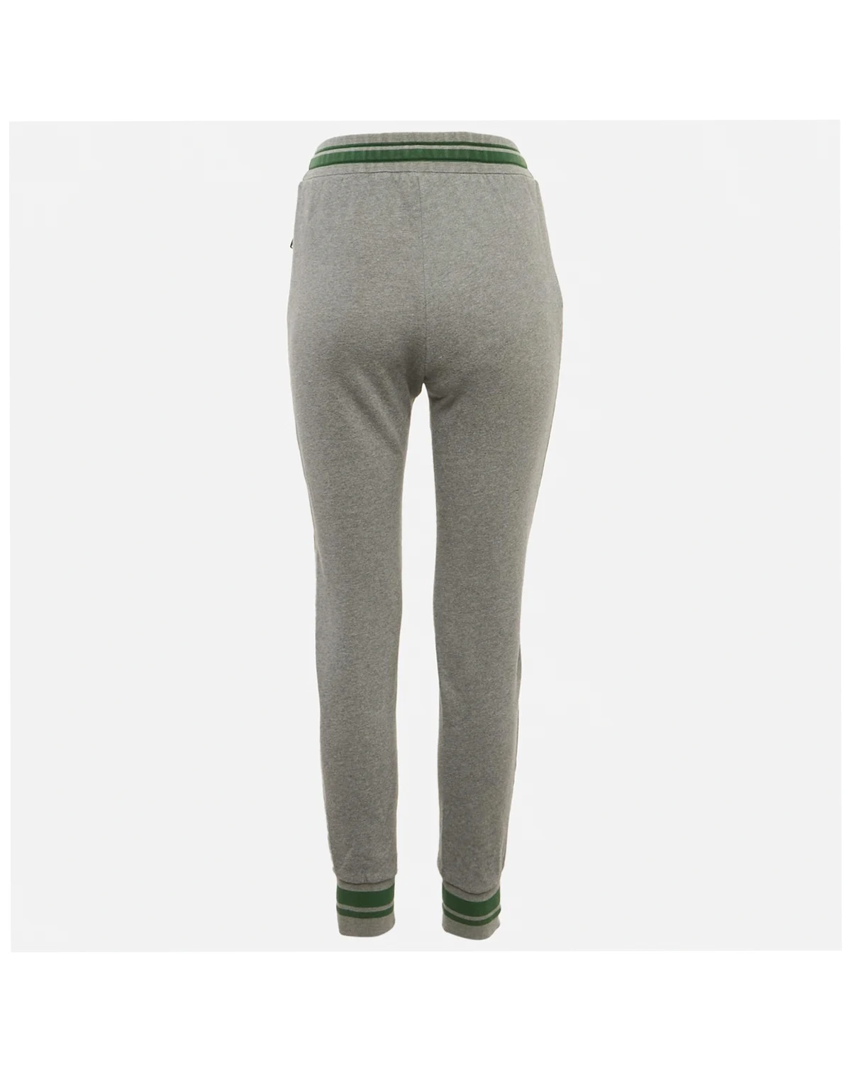 Dolce and Gabbana brings a playful twist to these grey DGFamily joggers with the little character patch peeking out from the leg. The green striped waistband and cuffs give them a sporty feel that s easy to wear for relaxed days.