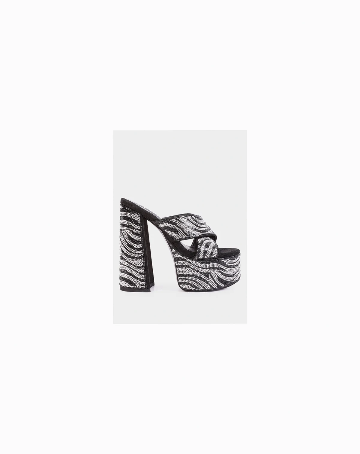 Diamante studded high platform sandals, available in two options to choose from. This cross strap sandals has padded insole which cuts off strain. The high heeled sandals is luxurious design with superb craftsmanship. Upper Material: Rhinestone Studded Faux Leather Lining Material: Polyurethane Outer Sole: Rubber Open Toe All Over Rhinestone Detail Stylish Dress Shoe High Heel Platform Sandals High Fashion Casual Style SH2929