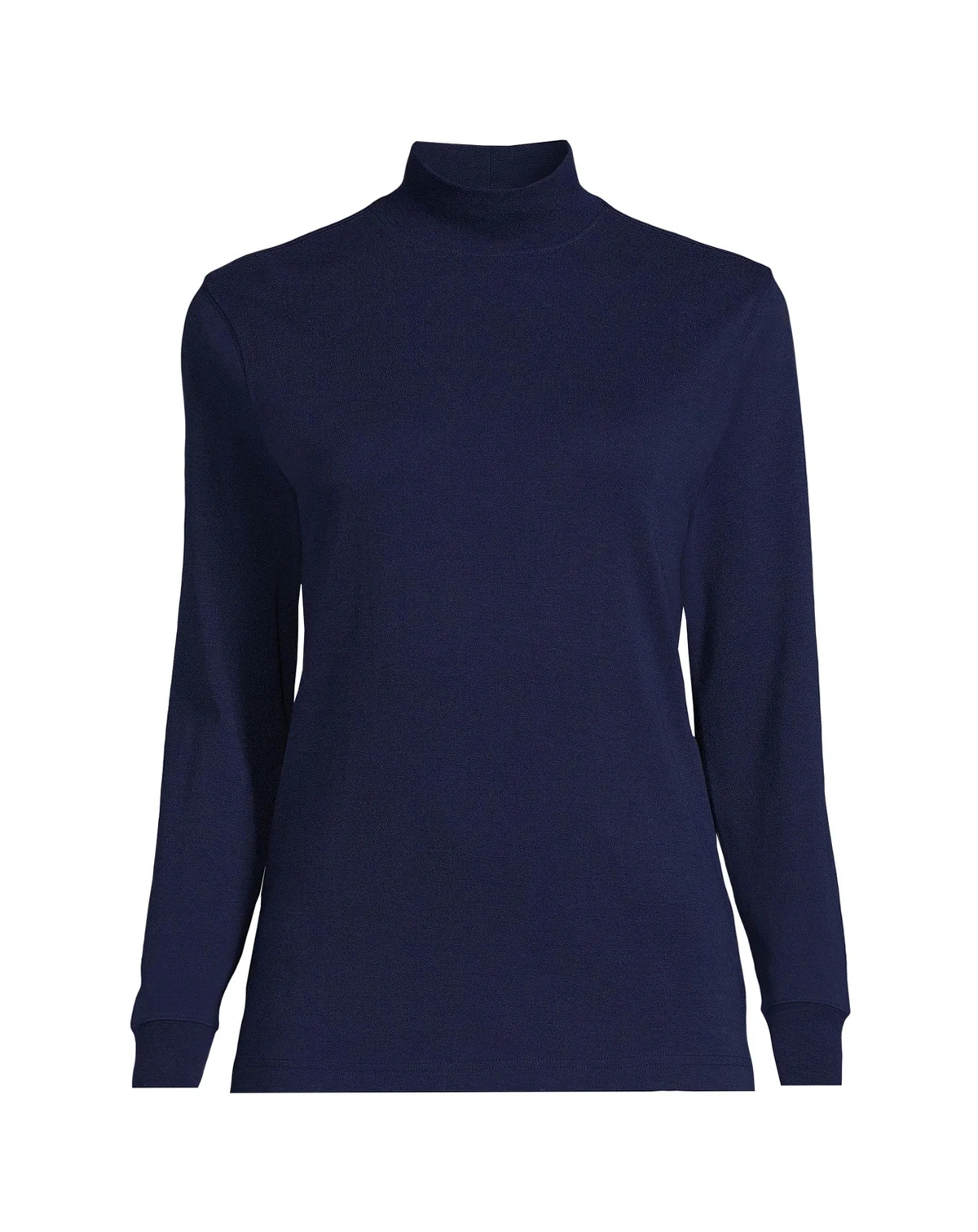 This Lands End Women s Relaxed Cotton Long Sleeve Mock Turtleneck is designed with your style and comfort in mind. Made from a body of 100% cotton this turtleneck is ultra-soft and smooth never scratchy ensuring you always feel as good as you look. And you will look good. Generously cut through the body this women s top flatters that slimming silhouette you love. Plus it makes a warm and cozy base layer during colder months. The 3% LYCRA spandex in the neck and cuffs offer just enough stretch to keep its shape something we know you want in a wardrobe essential like this.