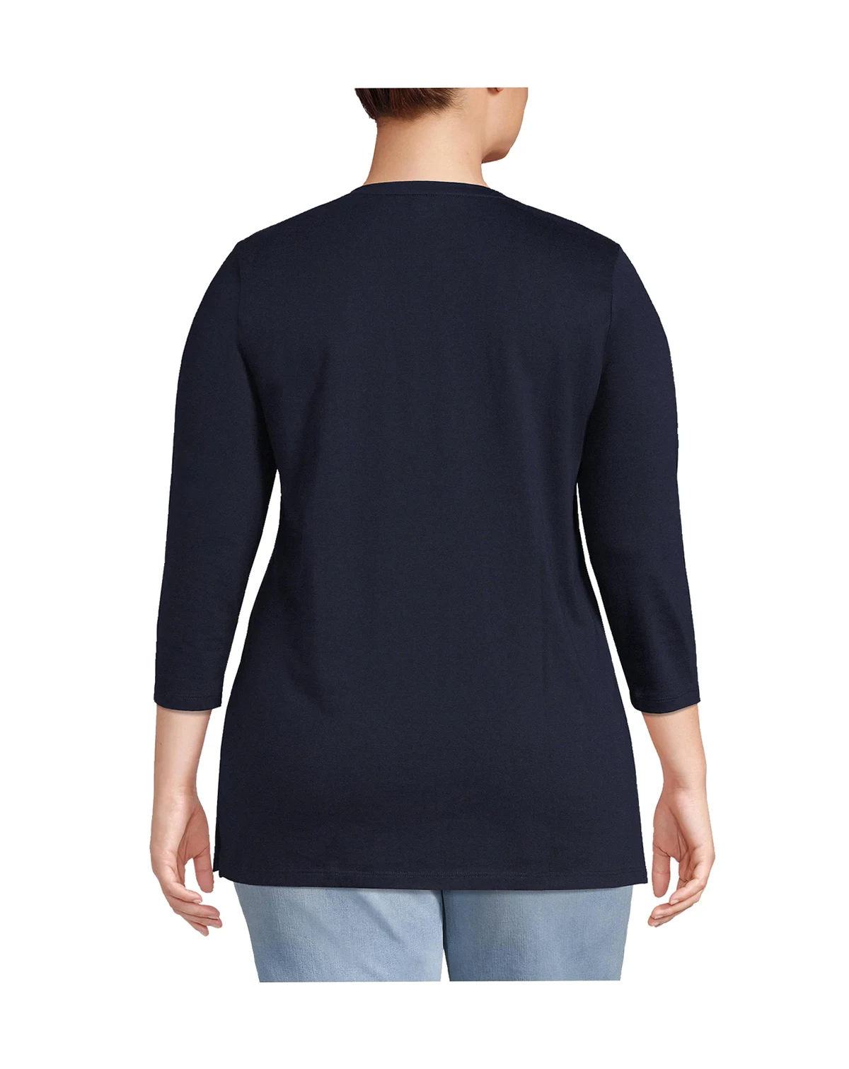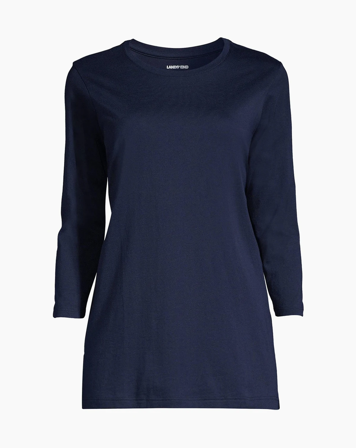 In need of a breathable super-soft and comfy layering tee to get you through the seasons? Look no further than the Lands End Women s ¾ Sleeve Supima Cotton Crewneck Tunic. Made from top-tier American grown cotton Supima is a longer and stronger fiber that resists shrinkage pilling and wrinkles.