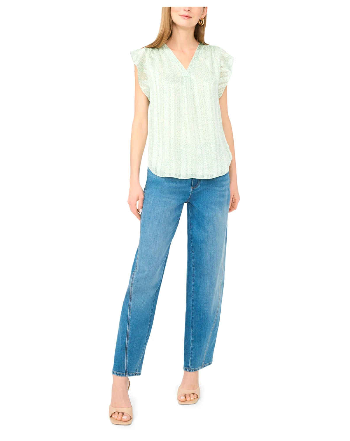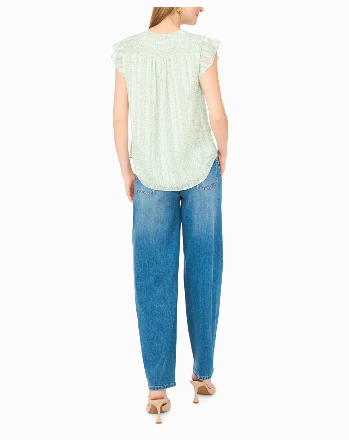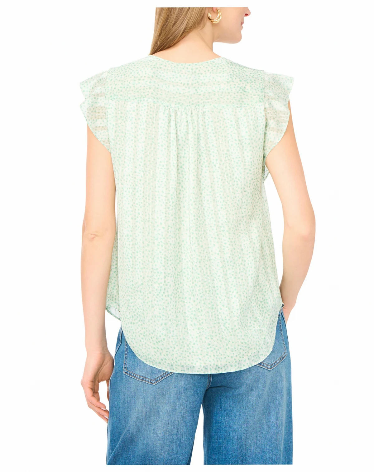 Feminine and polished, this Vince Camuto blouse features soft ruffle sleeves that add movement and charm to the silhouette. The flattering V-neckline and tailored drape create a refined, versatile piece great for both work and weekend. ABOUT THE BRAND: Vince Camuto is a globally renowned brand that embodies European styling. Detailed craftsmanship across the line embraces current trends while maintaining a classic aesthetic.