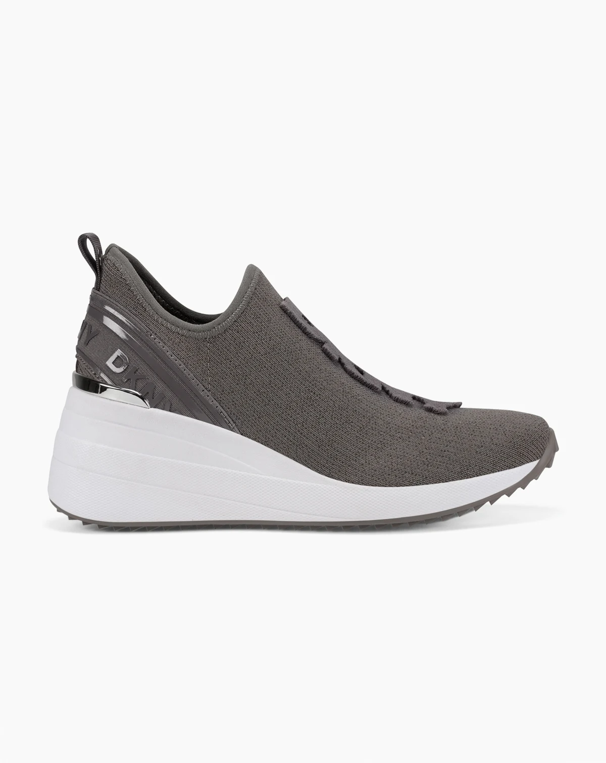 DKNY Women's Keeva Slip On Wedge Sneaker elevates laid-back energy and signature branding to a modern slip-on silhouetteâ€"perfect for casual, street-savvy looks.