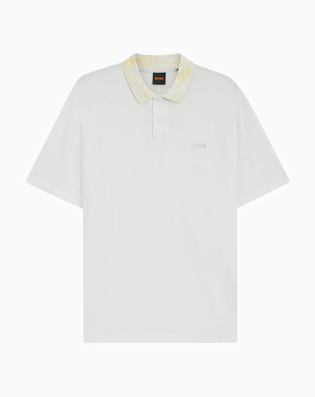 Topped with a patterned collar for creative contrast, this BOSS Men's wear polo shirt has a laid-back fit for casual appeal. Breathable cotton pique.