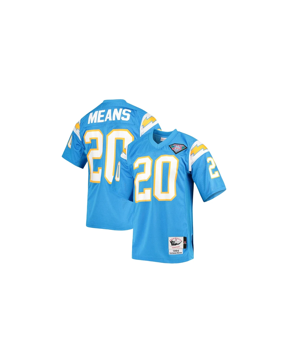 Celebrate your favorite player's storied career with the Los Angeles Chargers with this Natrone Means Authentic Retired Player jersey from Mitchell Ness. The picture-perfect design is sure to remind you of the days when Natrone Means patrolled the gridiron for the Los Angeles Chargers. Its polyester fabric and tackle twill graphics give you a lightweight, durable piece of gear to honor one of the game's all-time greats.