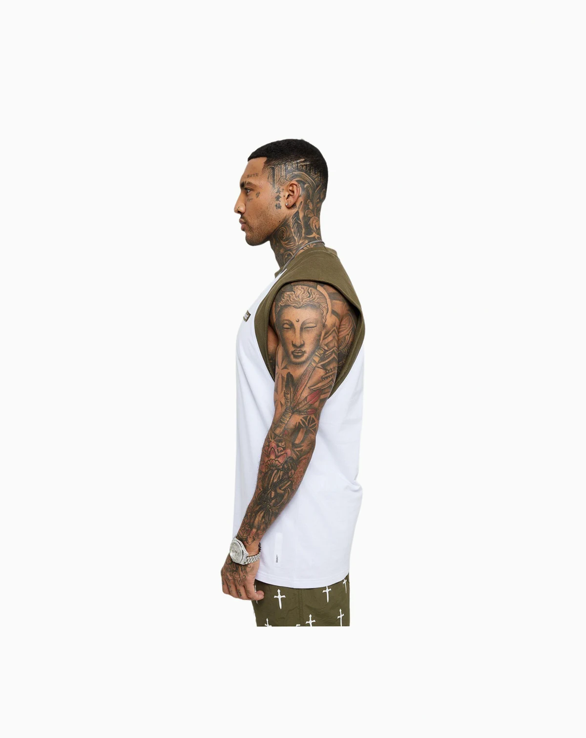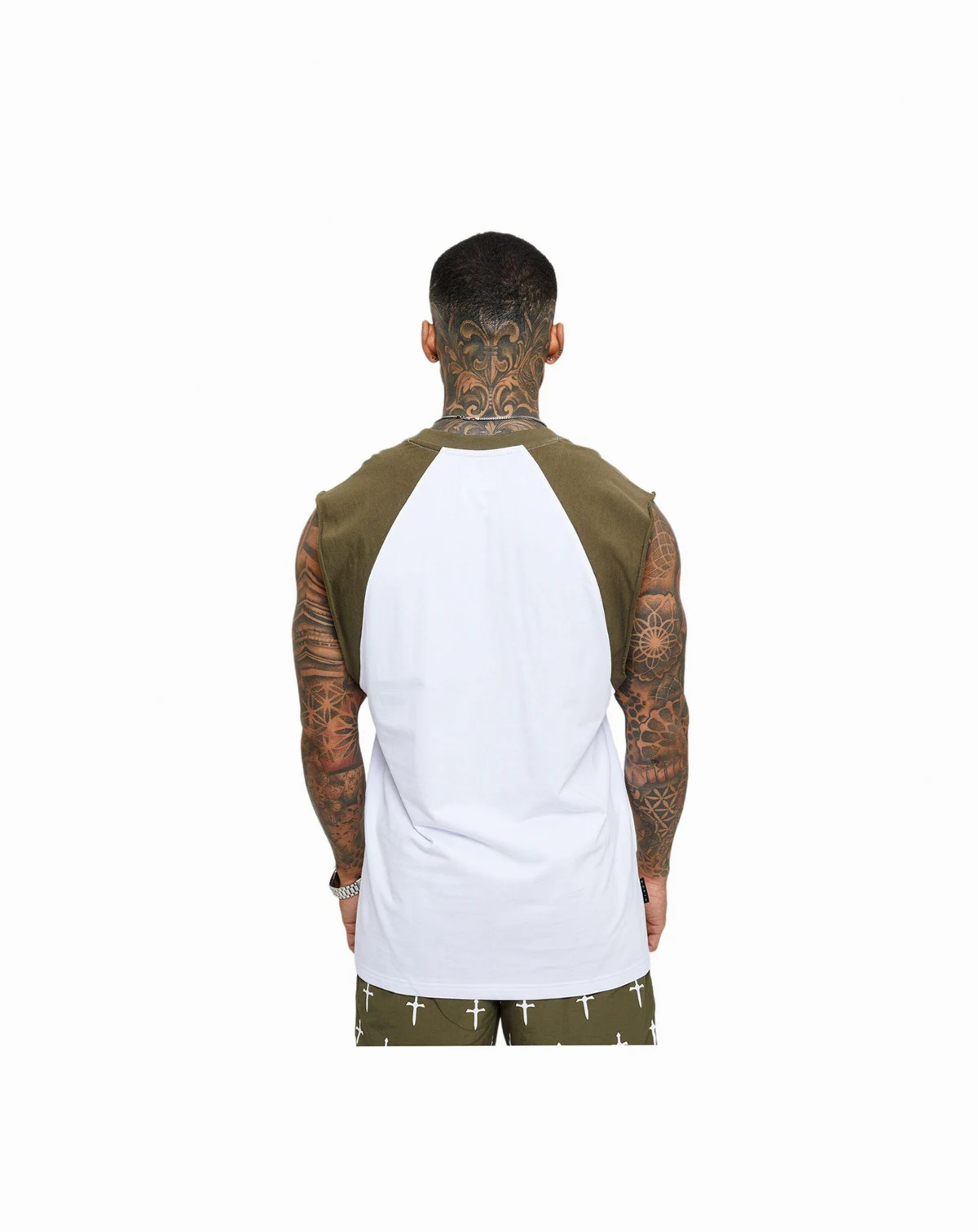 The Numeraire Raglan Muscle T-Shirt adds a pop of color to your outfit without going over the top. Raw armholes add a touch of roughness to a light cotton muscle tee.