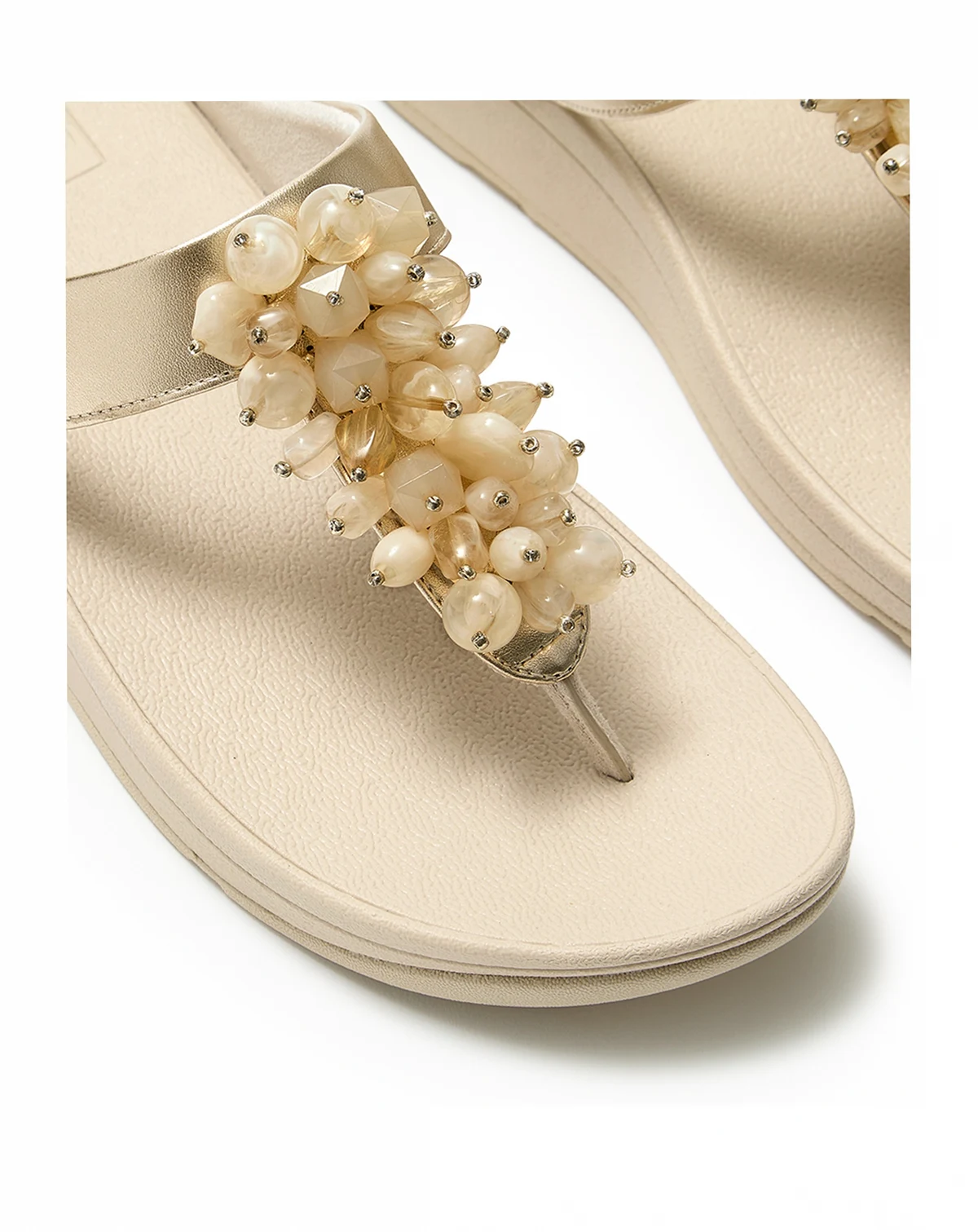 Evening-ready beadwork clusters elevate these toe-post sandals from FitFlop, comfortable construction into dressy elegance. Slip-resistant outsoles provide stability for special occasions.