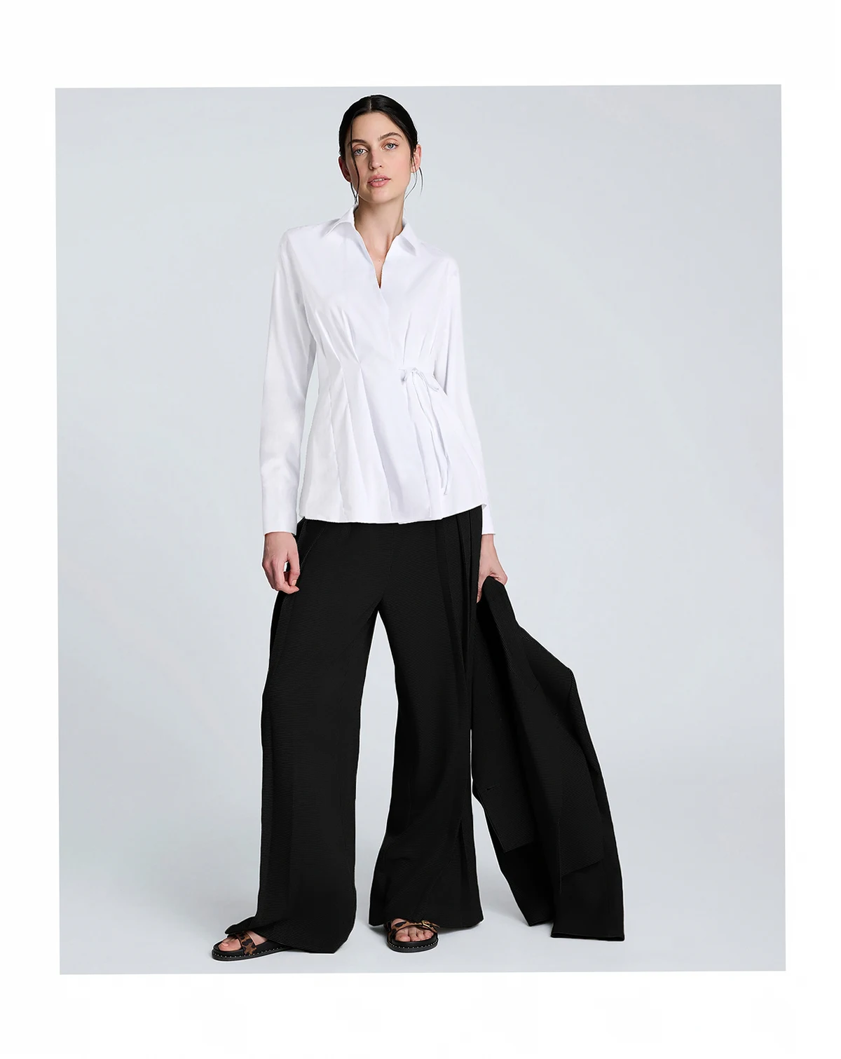 Bold and beautiful, this Kenneth Cole shirt features a classic collared neckline and long sleeves for a polished look. A tie waist and wrap-front design create a flattering, stylish silhouette.