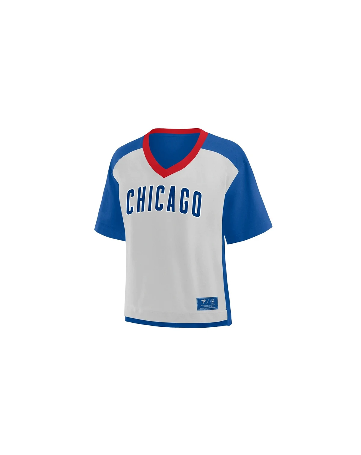 Level up your Chicago Cubs style with this Oversized Race To Win V-neck T-shirt by Fanatics. Its dropped shoulders and hem length create a trendy look, while the two-tone design and contrasting trim accentuate the team patch. The oversized fit provides a roomy and relaxed feel, ensuring you stay comfortable in this fashionable Chicago Cubs T-shirt.