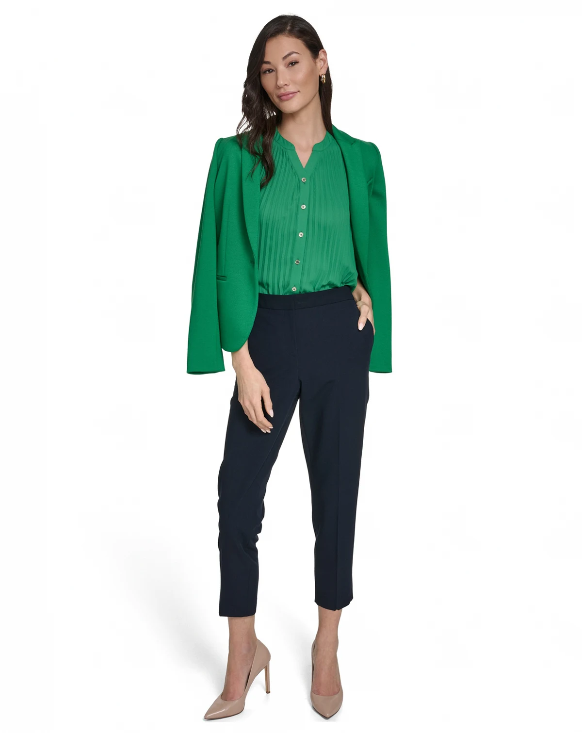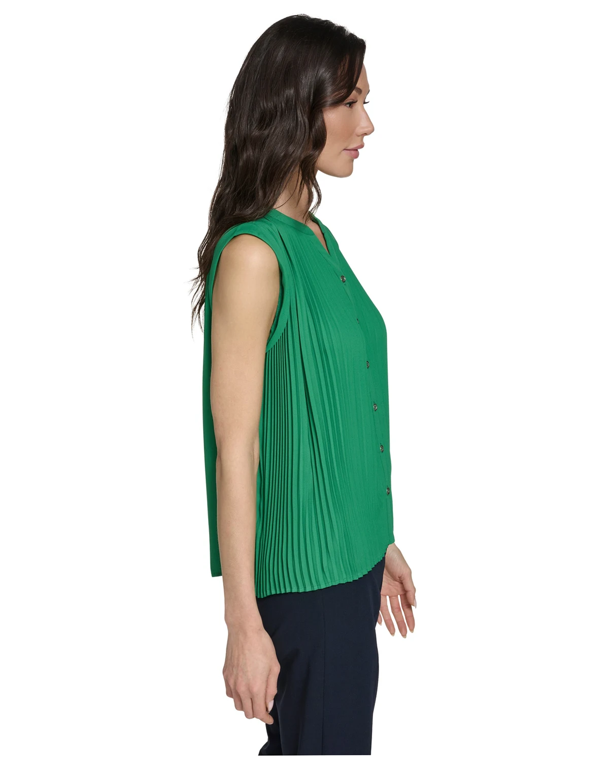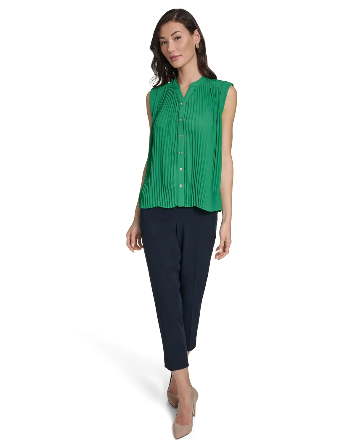 Designed with pleated detailing, this top by Tommy Hilfiger features a V-neck for a sophisticated touch. The sleeveless silhouette and button-front closure allow for easy, elegant styling.