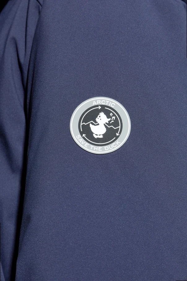 A distinguished, round sleeve patch boasting the “ARCTIC SAVE THE DUCK” insignia and signature duck motif stands as an emblem of sustainable design and Italian craftsmanship.