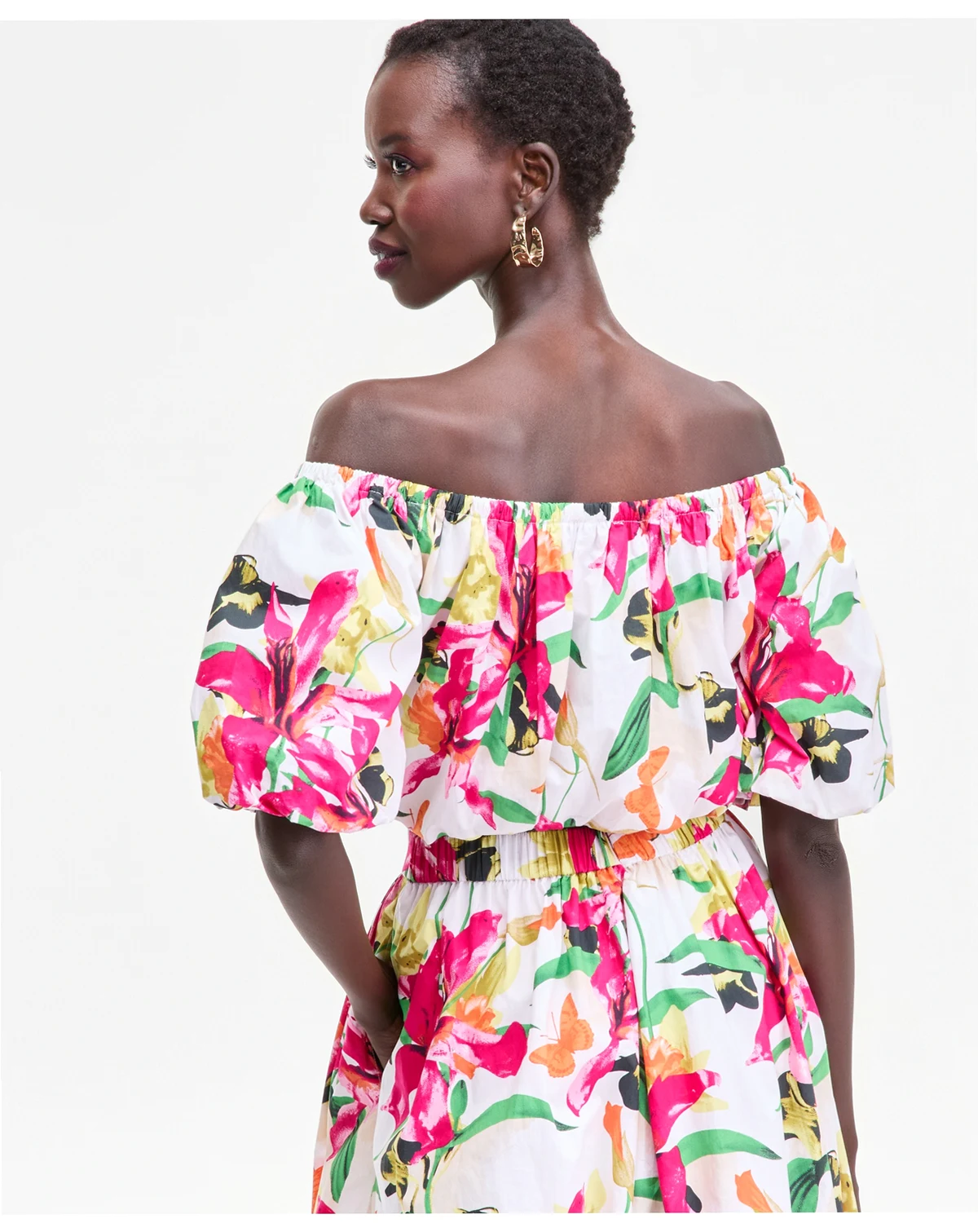 Show off your shoulders in this cropped cotton blouse from I.N.C. International Concepts featuring balloon sleeves and an on-trend bubble hem. ABOUT THE BRAND: I.N.C. is inspired by fabulous women—always bold, confident, and stylish.