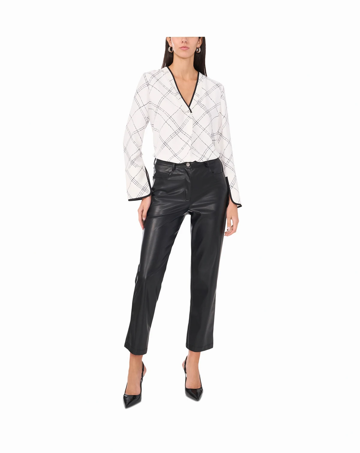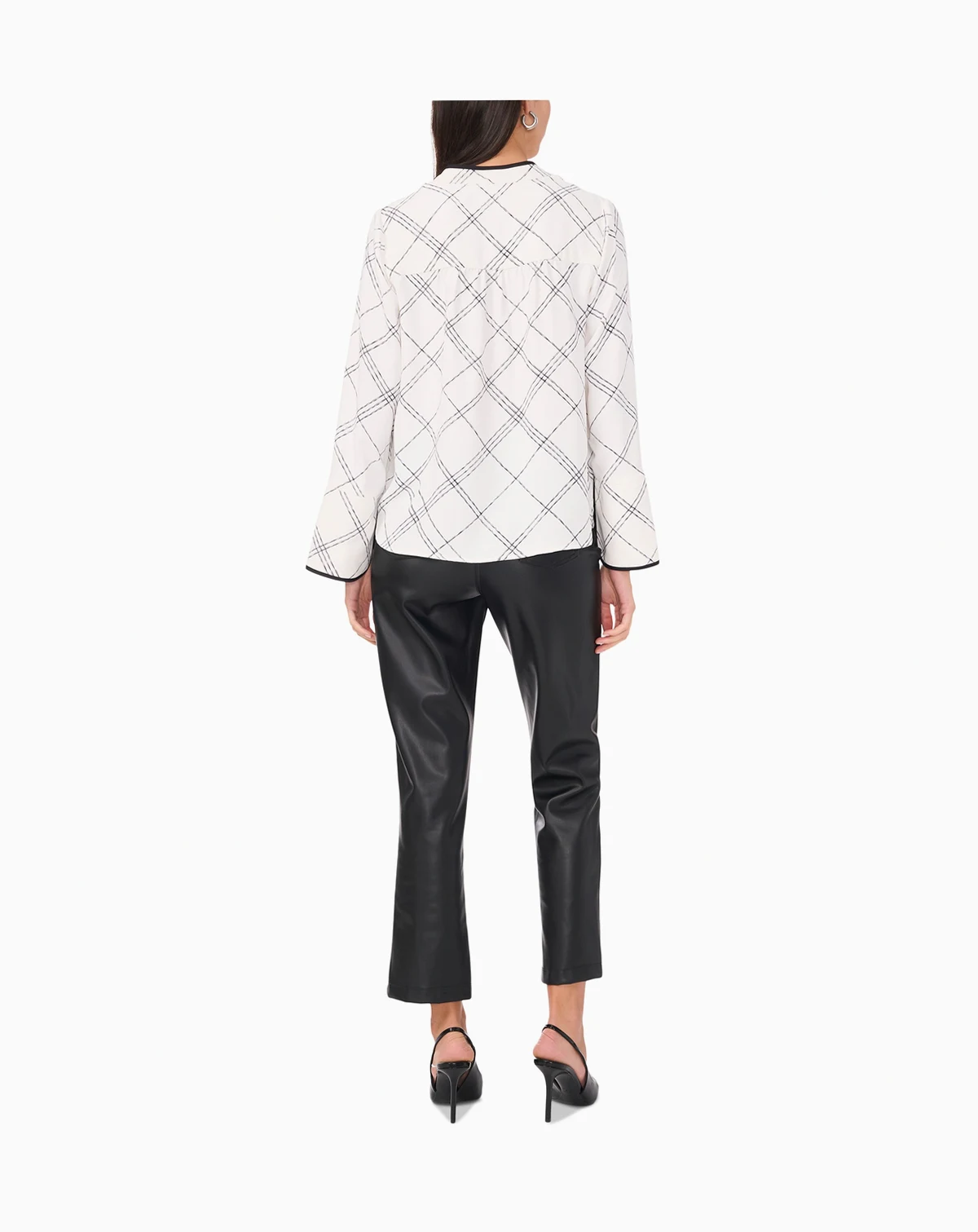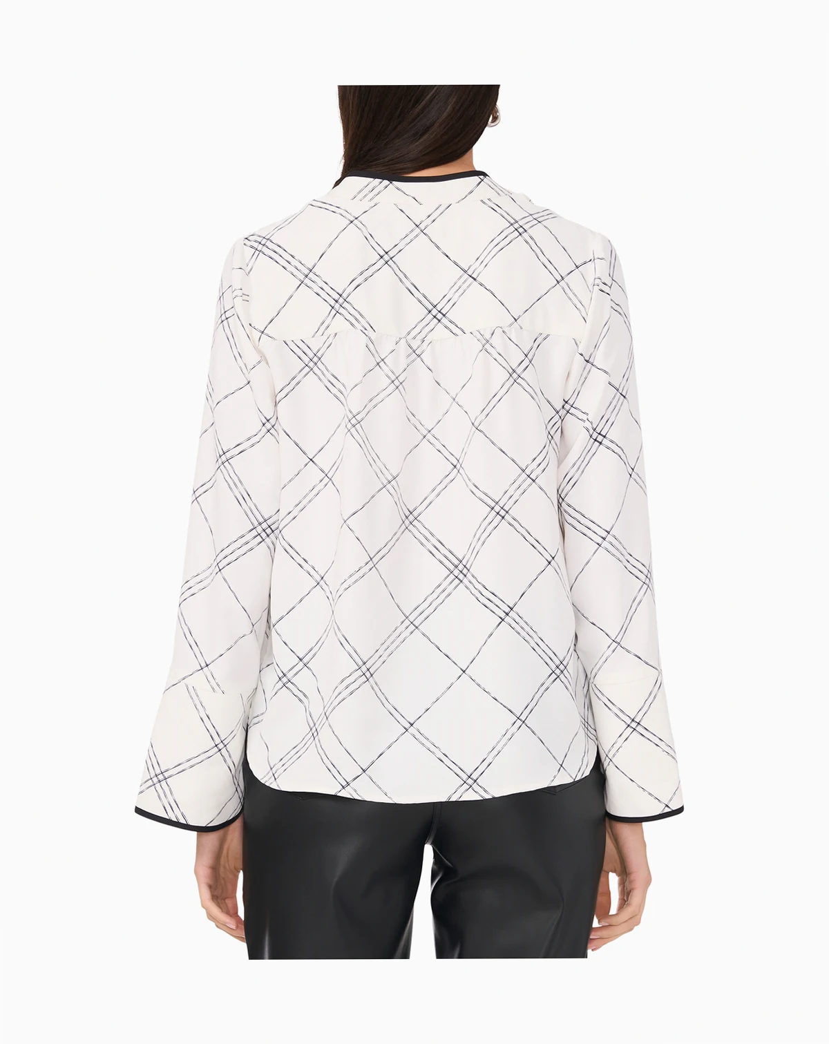 Enhance your office and after-hours wardrobe with this top from Vince Camuto, featuring defined edges and a timeless windowpane print. ABOUT THE BRAND: Vince Camuto is a globally renowned brand that embodies European styling. Detailed craftsmanship across the line embraces current trends while maintaining a classic aesthetic.