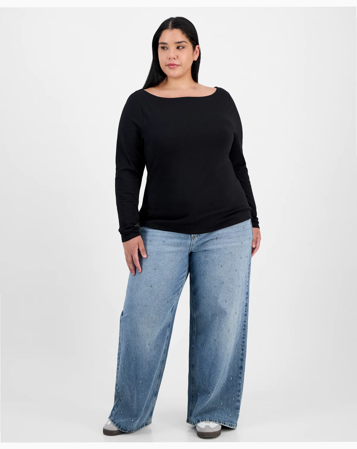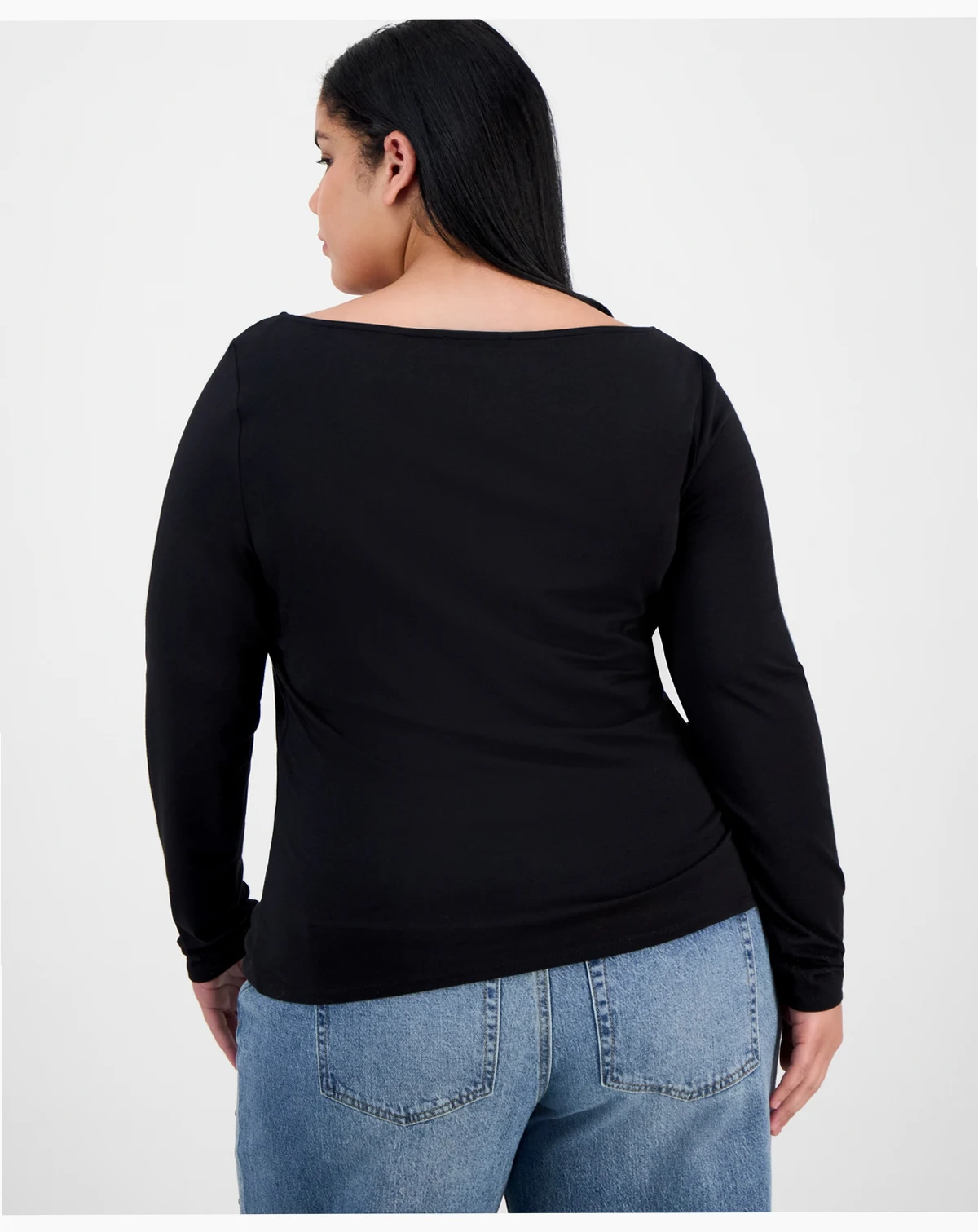 Trendy Plus Boat-Neck Long-Sleeve Top, Macy's Exclusive