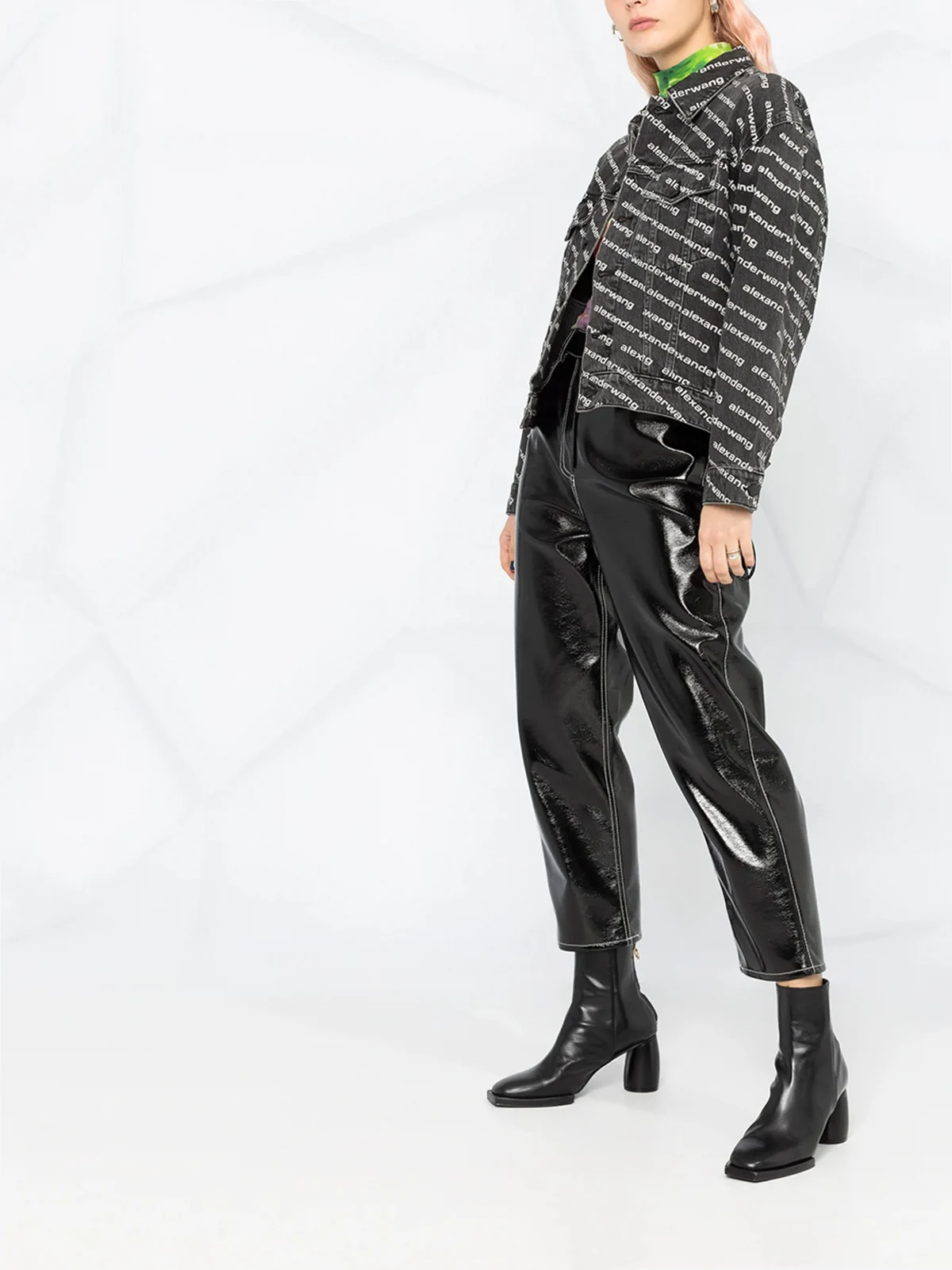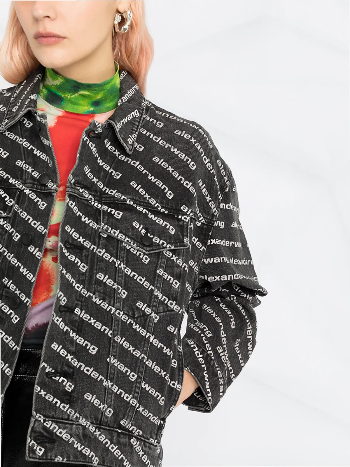 charcoal-grey/white cotton all-over logo print tonal stitching classic collar front button fastening long sleeves buttoned cuffs front flap pockets